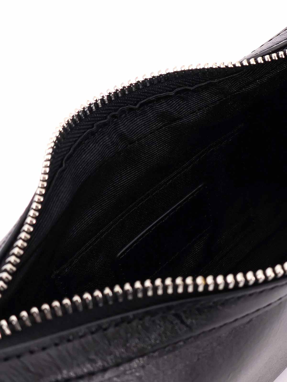 Adjustable handle, metal buckle, zip closure, engraved logo, leather, W: 22cm, H: 10cm, D: 5cm.