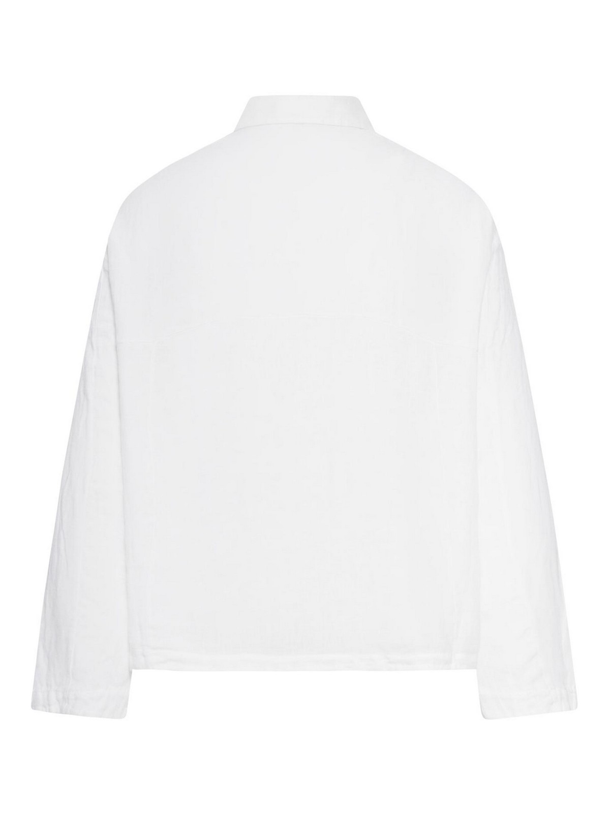 classic collar with soft construction, front button closure, long straight sleeves with a relaxed fit, slightly dropped shoulders, back yoke with horizontal stitching, plain cuffs, finished straight hem, regular fit, color: white