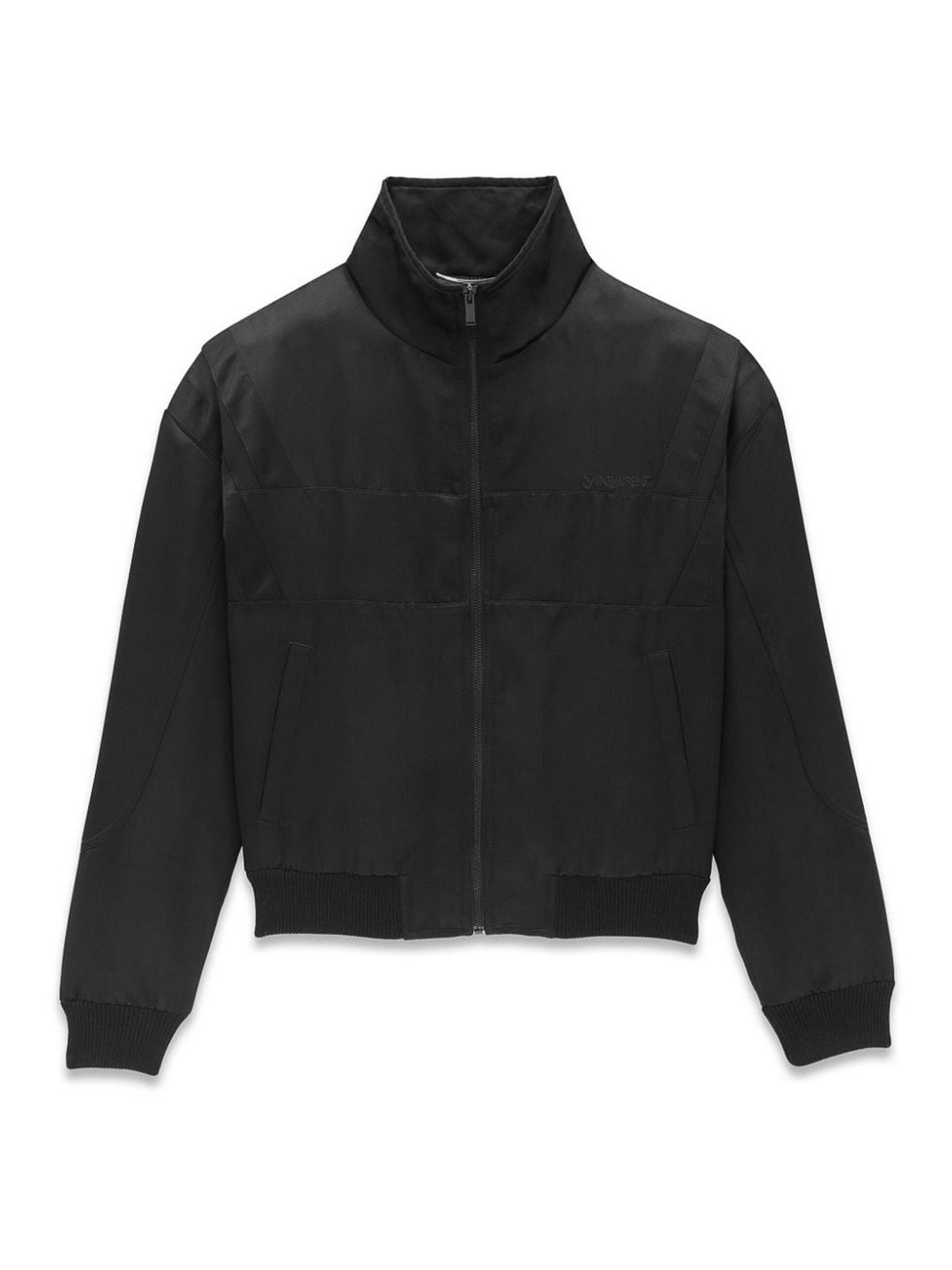 SAINT LAURENT: casual jackets - Logo Satin Bomber Jacket