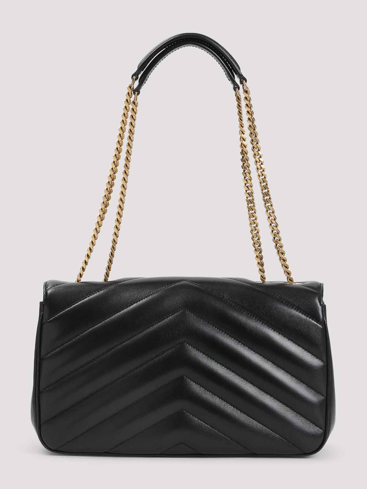 Saint laurent loulou m black matelass leather shoulder bag. crafted from black matelass leather, golden-toned hardware, metal cassandre logo on the front, concealed magnetic button fastening, sliding chain and leather shoulder strap, inner detachable mini-pouch and mirror, lined.