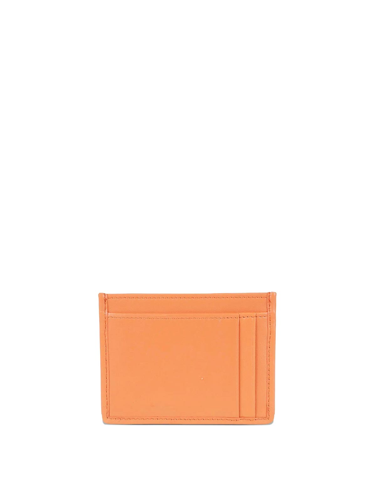 Orange, matelass effect, gold-tone logo plaque, multiple card slots, stitched edges, leather