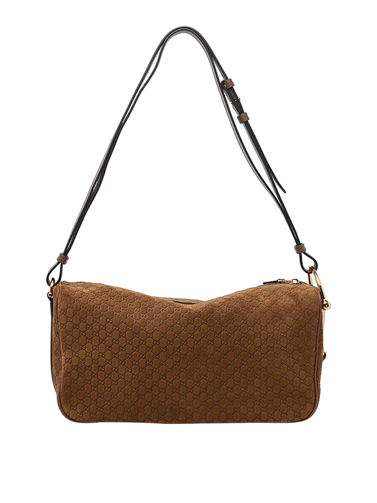Gucci brown medium gucci half horsebit shoulder bag, zip closure, inner open pocket, suede model, gg logo allover