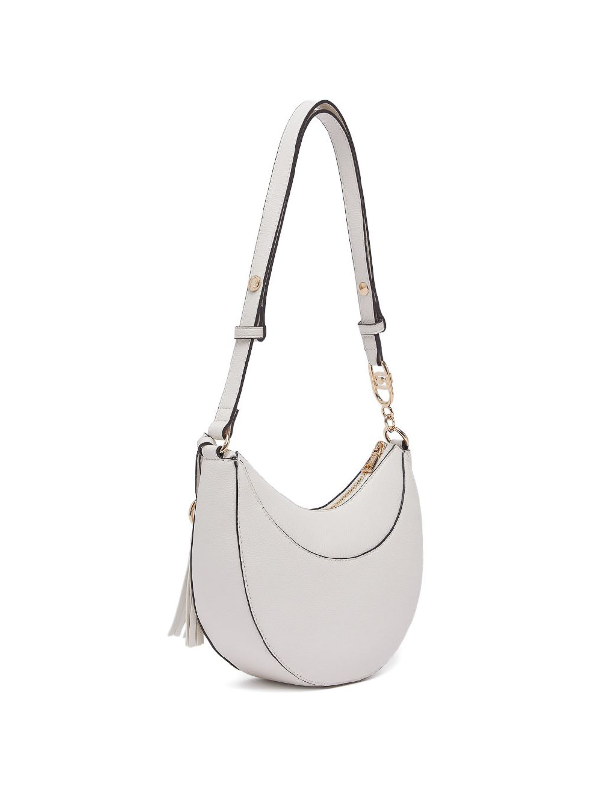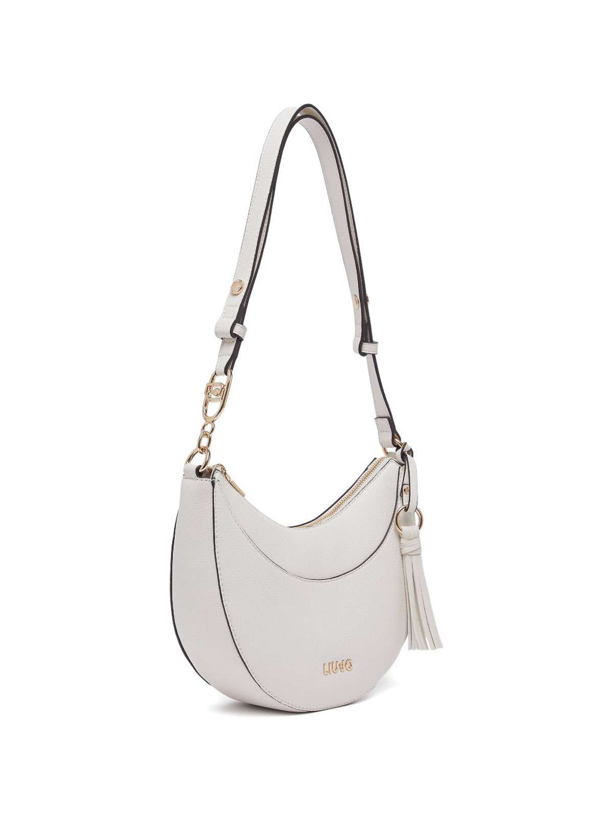 Medium hobo bag in off-white from liu jo featuring a decorative charm. crafted from high-quality materials, this bag combines elegance with functionality, perfect for enhancing everyday outfits or more polished looks. its versatile design and signature details make it a standout accessory in any contemporary wardrobe