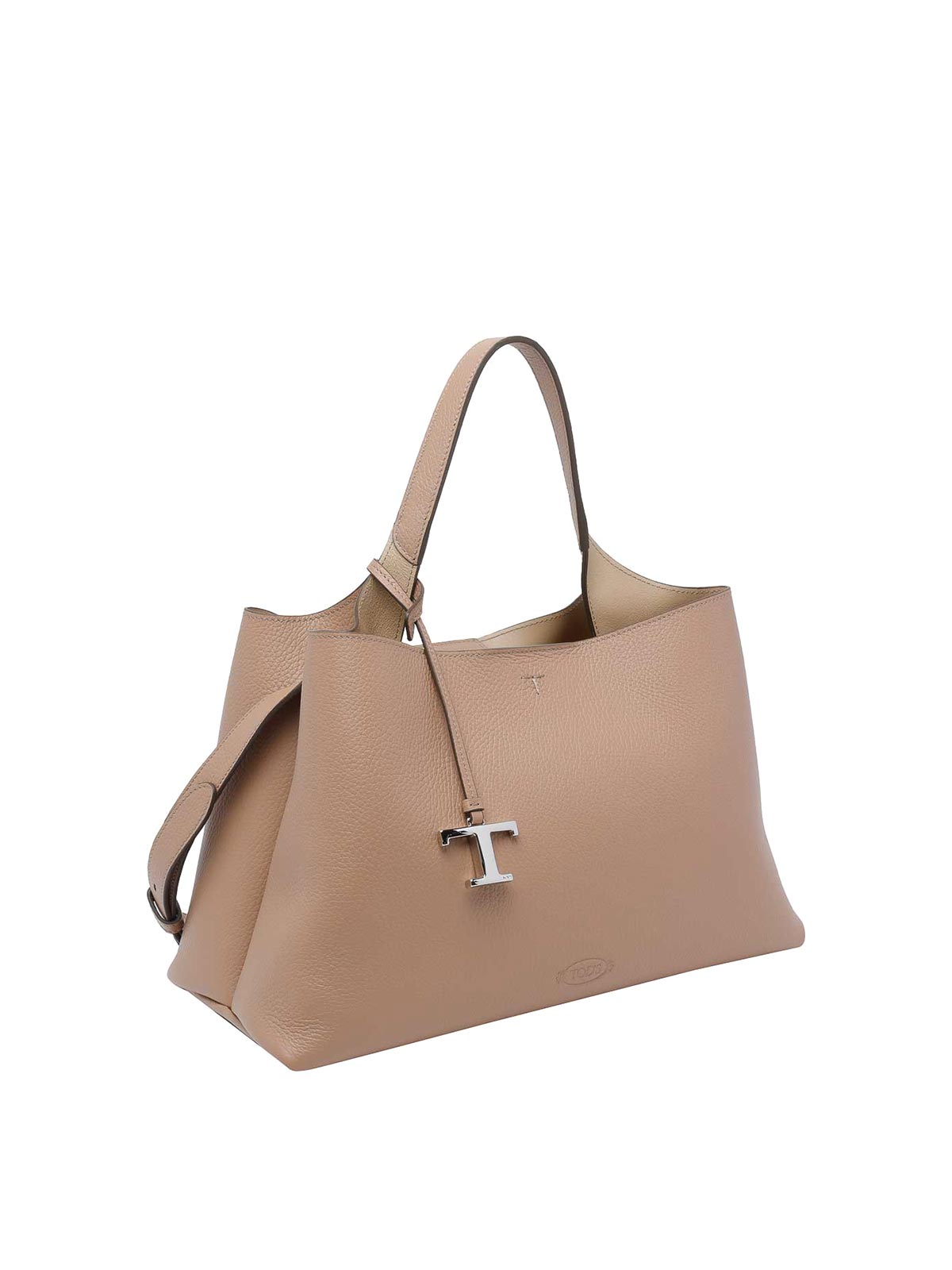 Tod's white medium leather handbag, carabiner closure, 2 sections, 2 inner zipped pockets, adaptable strap, leather model