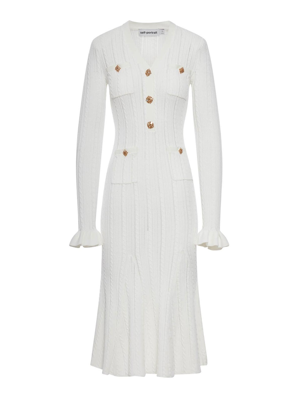 Self Portrait: knee length dresses - Midi Dress In White Openwork Knit