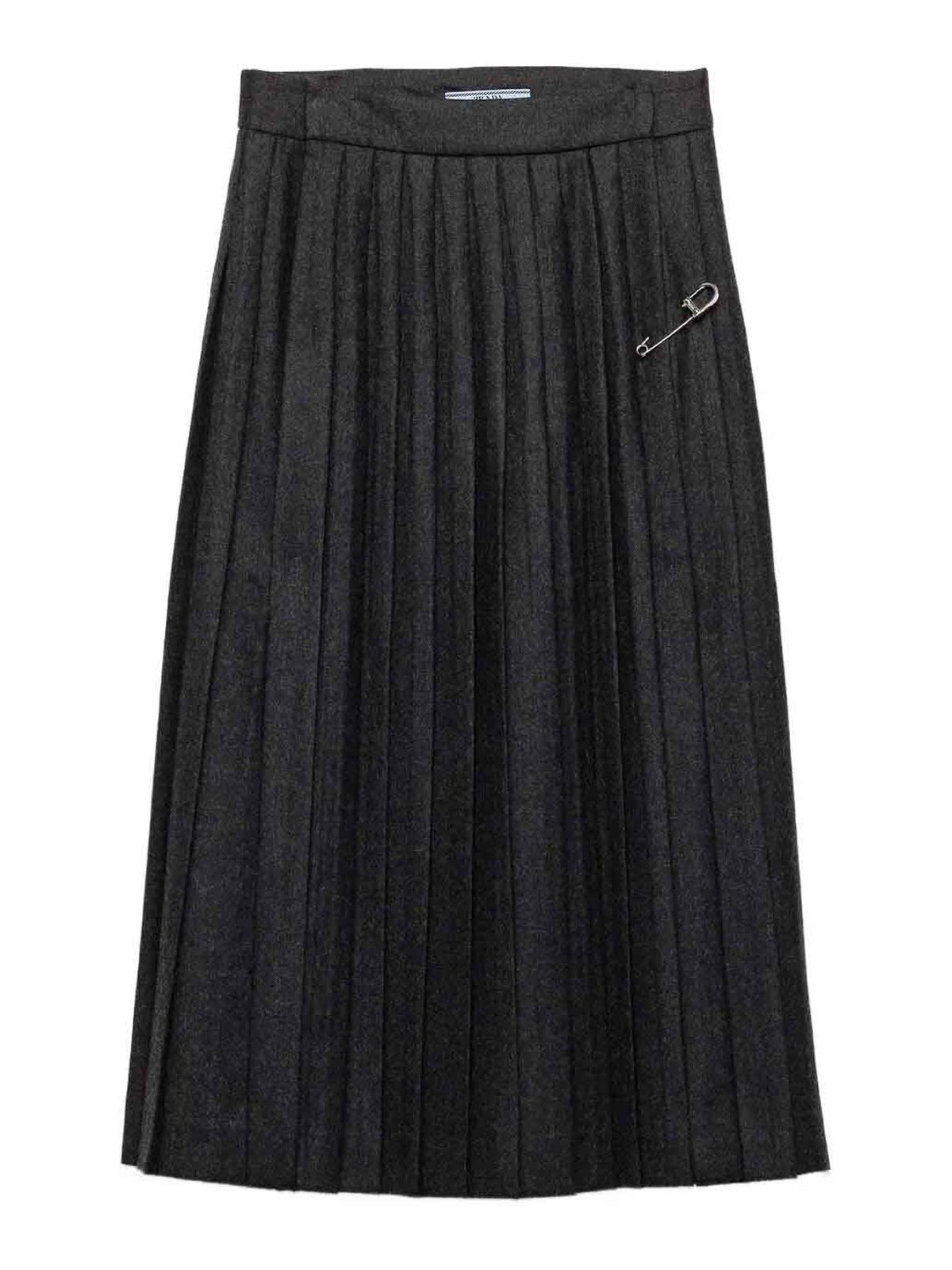 Sophisticated and feminine silhouette, the pleated skirt reinterpreted with a design with essential details, the model, made of wool flannel, characterized by a wrap silhouette with slightly flared lines, pleated fit, slit on the front, front closure with covered snaps