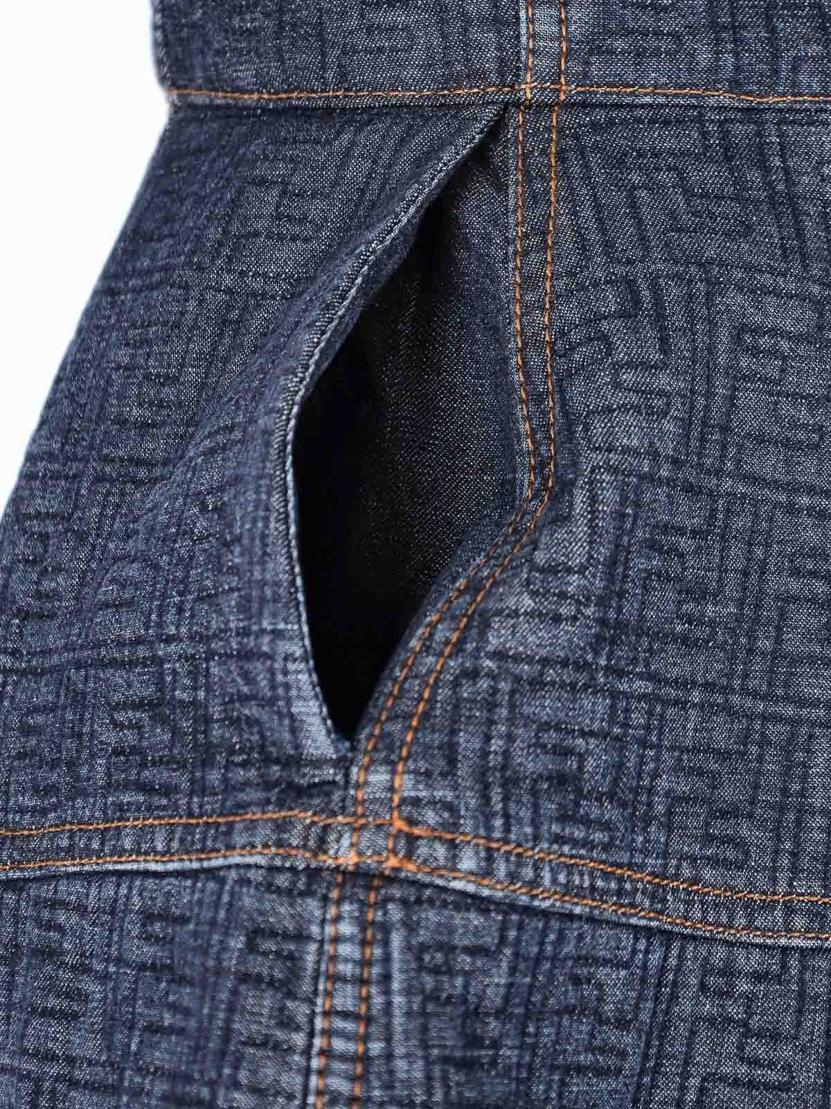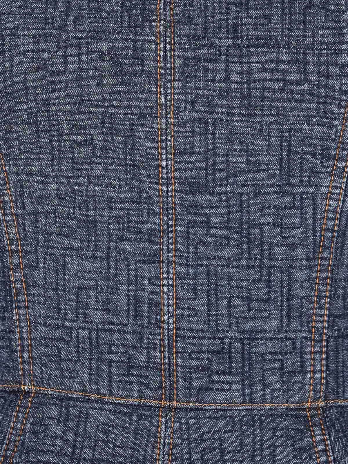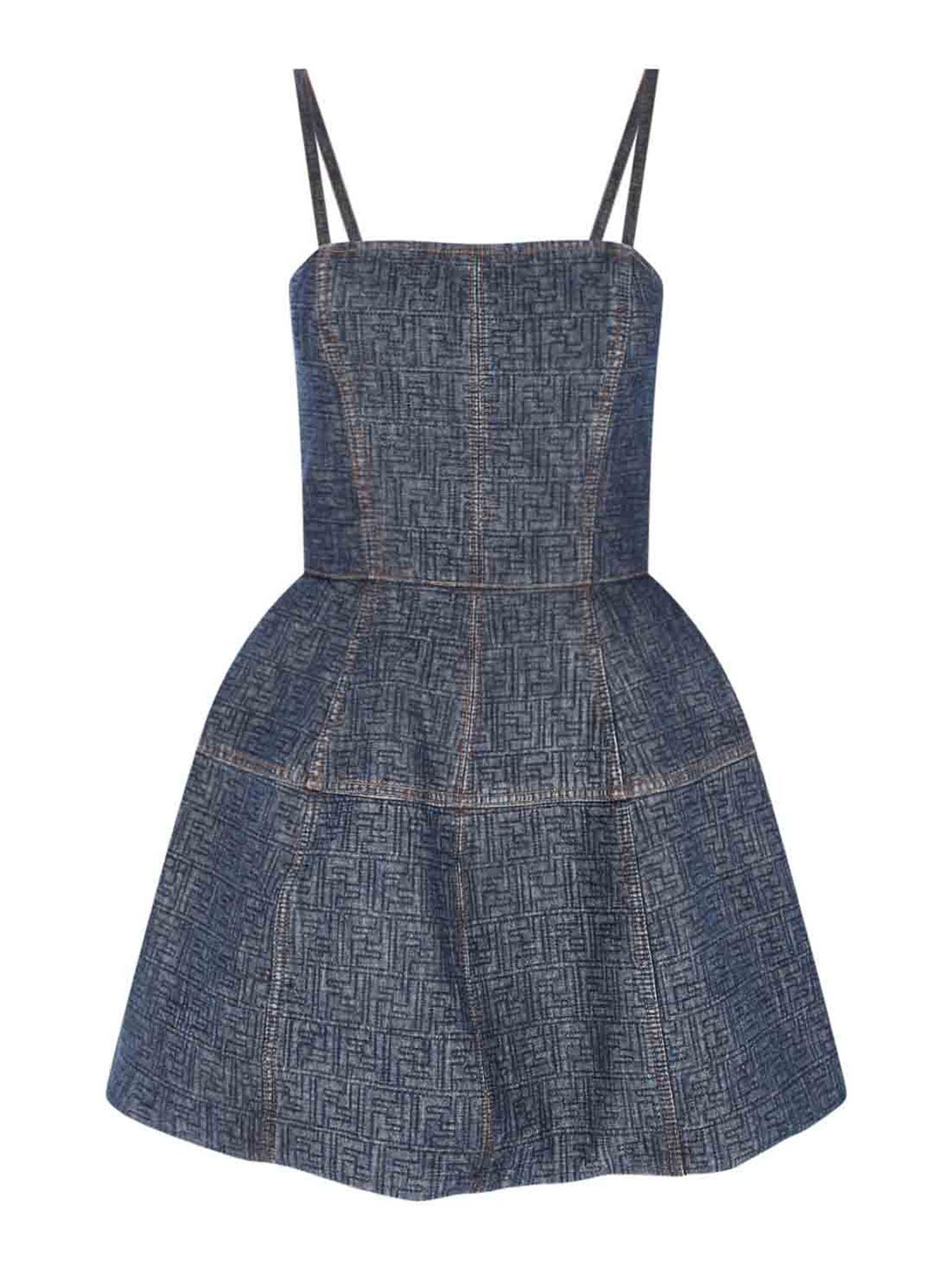 Fendi ff mini dress in blue denim, all-over jacquard ff motif, thin straps, rear zip closure, straight hem.