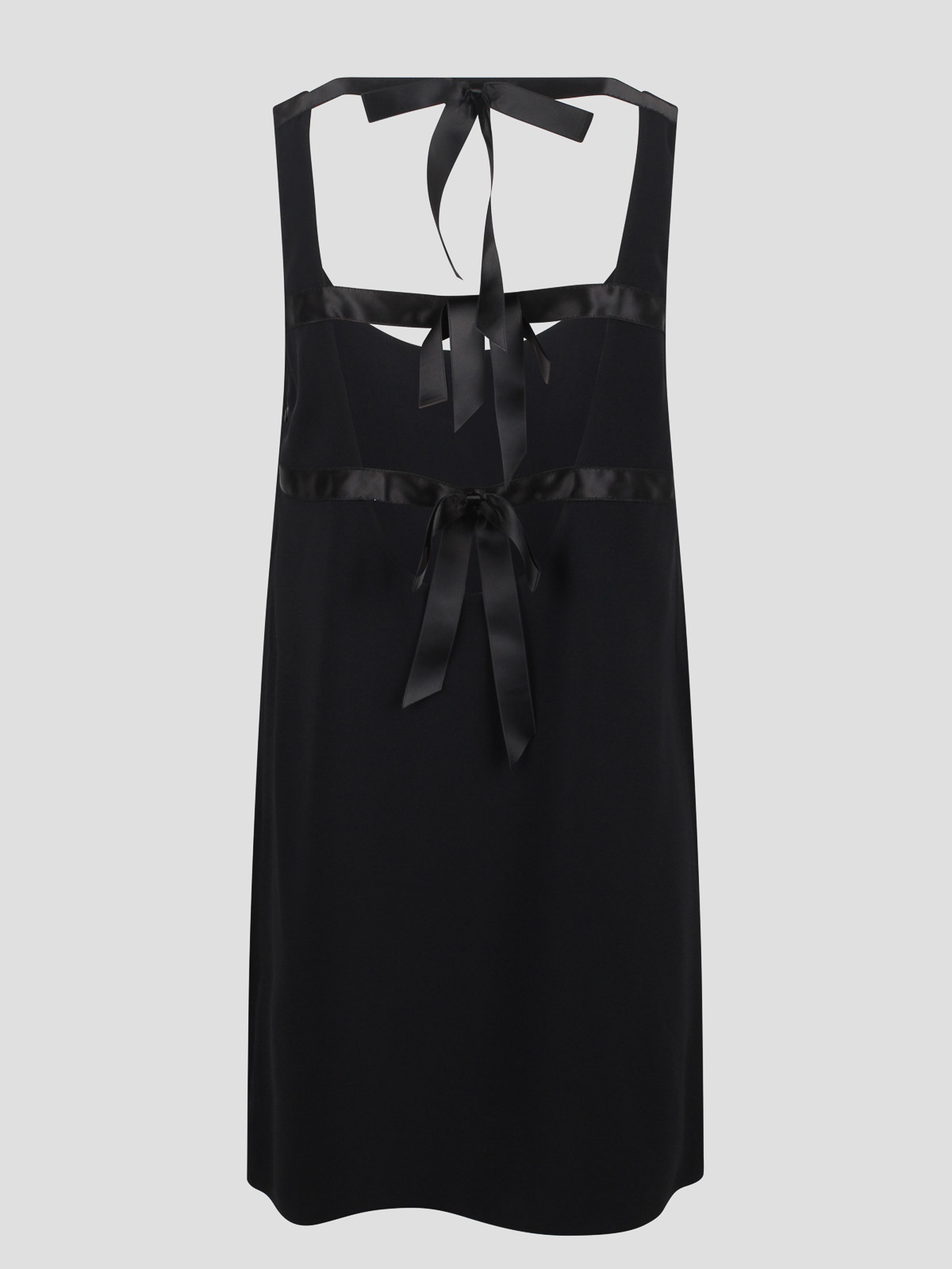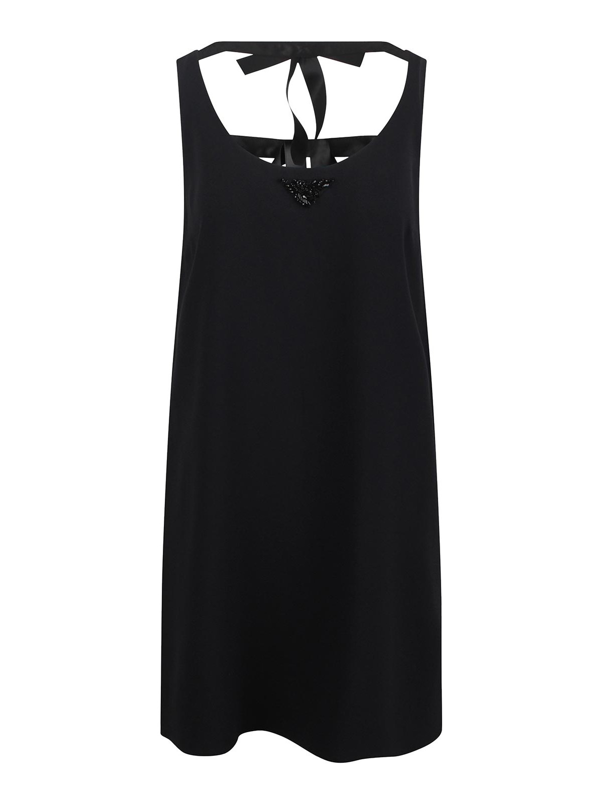 Prada Triangle Logo Hidden Side Zip Mini Dress Crew Neck Sleeveless Beaded Triangle Logo Bow Glass Embellishment