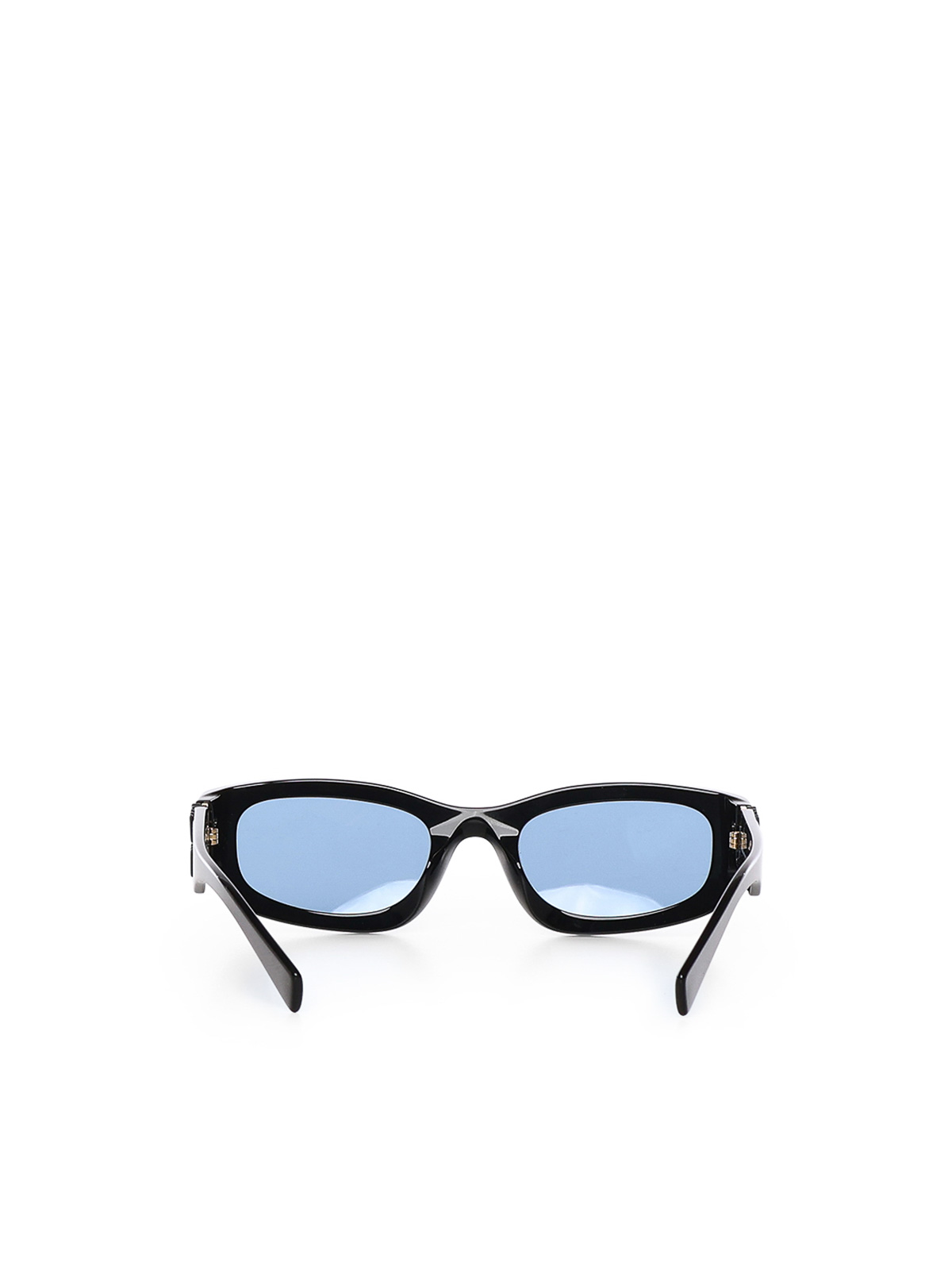 made of acetate, logo on the temple hinge, 100% uva/uvb protection, designer color: periwinkle lenses