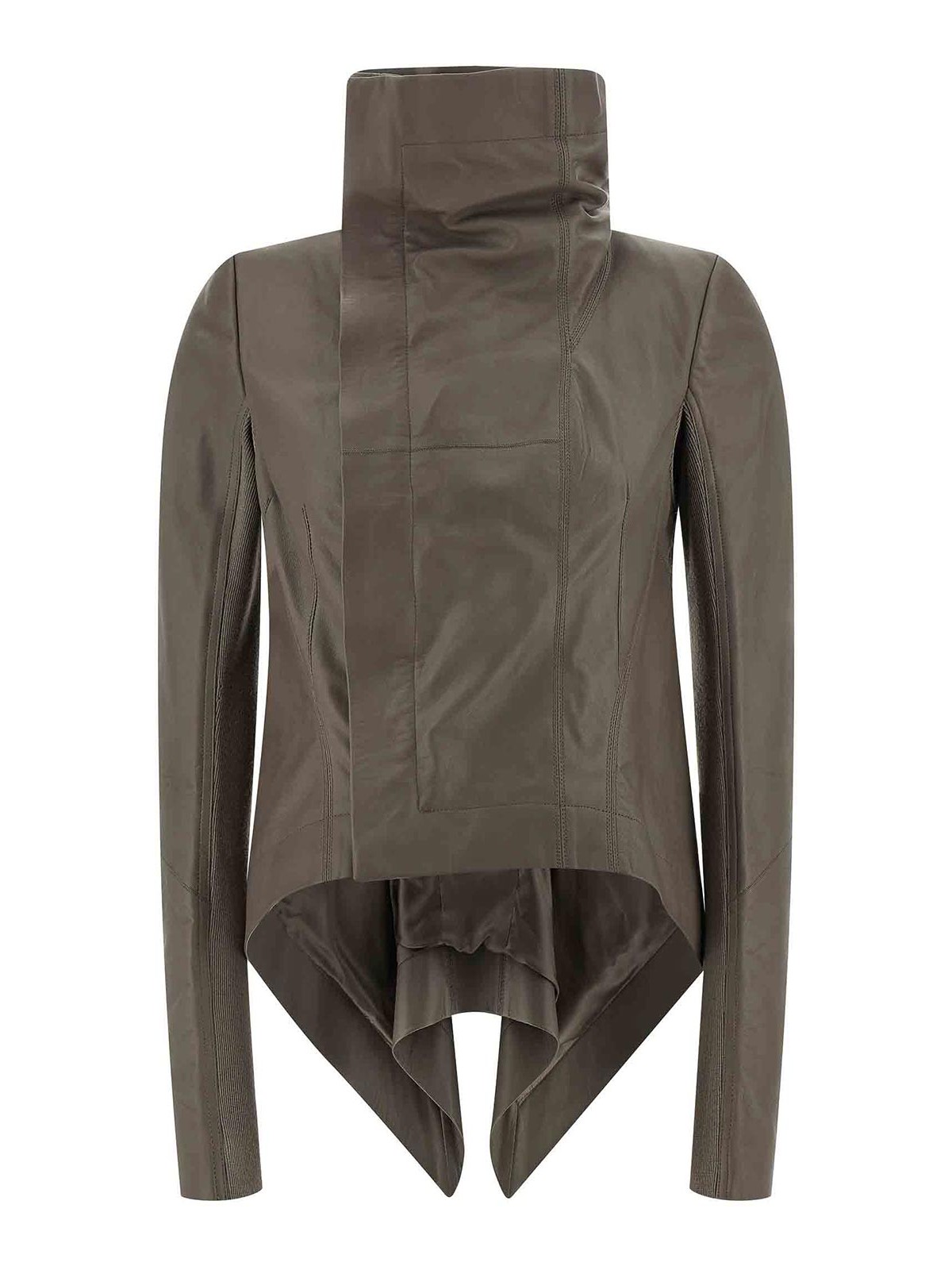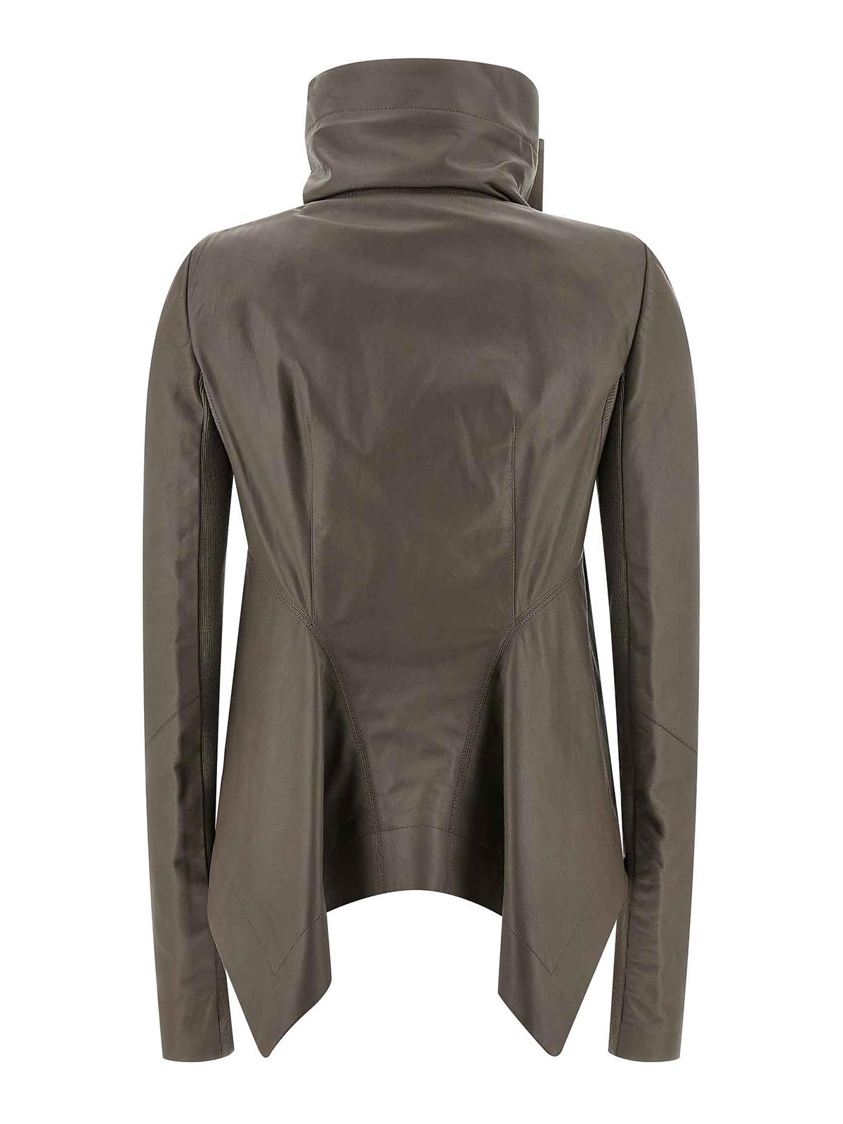 naska biker' lambskin jacket with lining, panel construction, foldable high neck, front asymMetricas l zip closure, slightly padded shoulder strap, long sleeves with stretch ribbed knit inserts, pockets, and asymMetricas l hem.