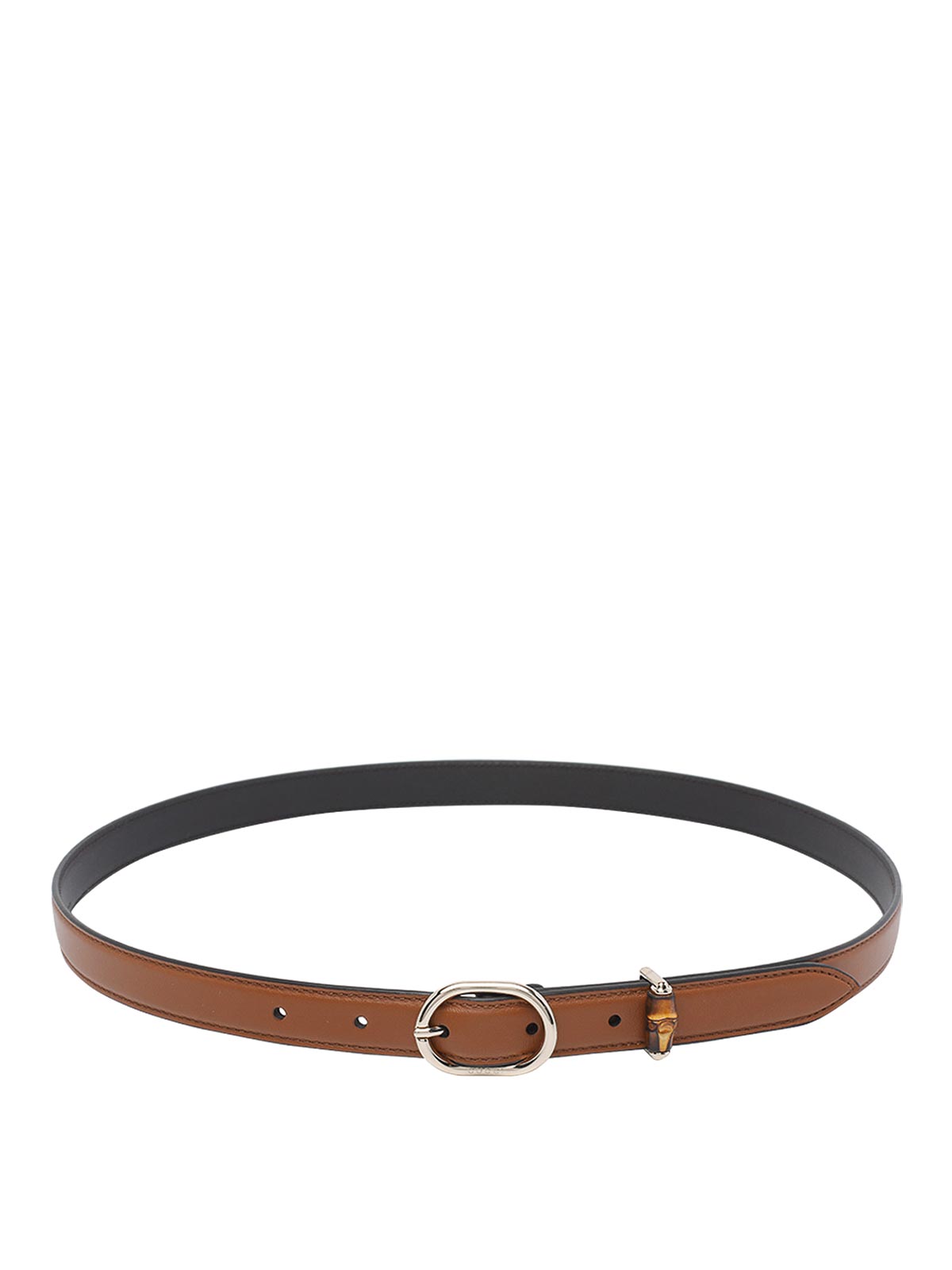 Gucci brown oval buckle thin belt, frontal buckle closure, leather model