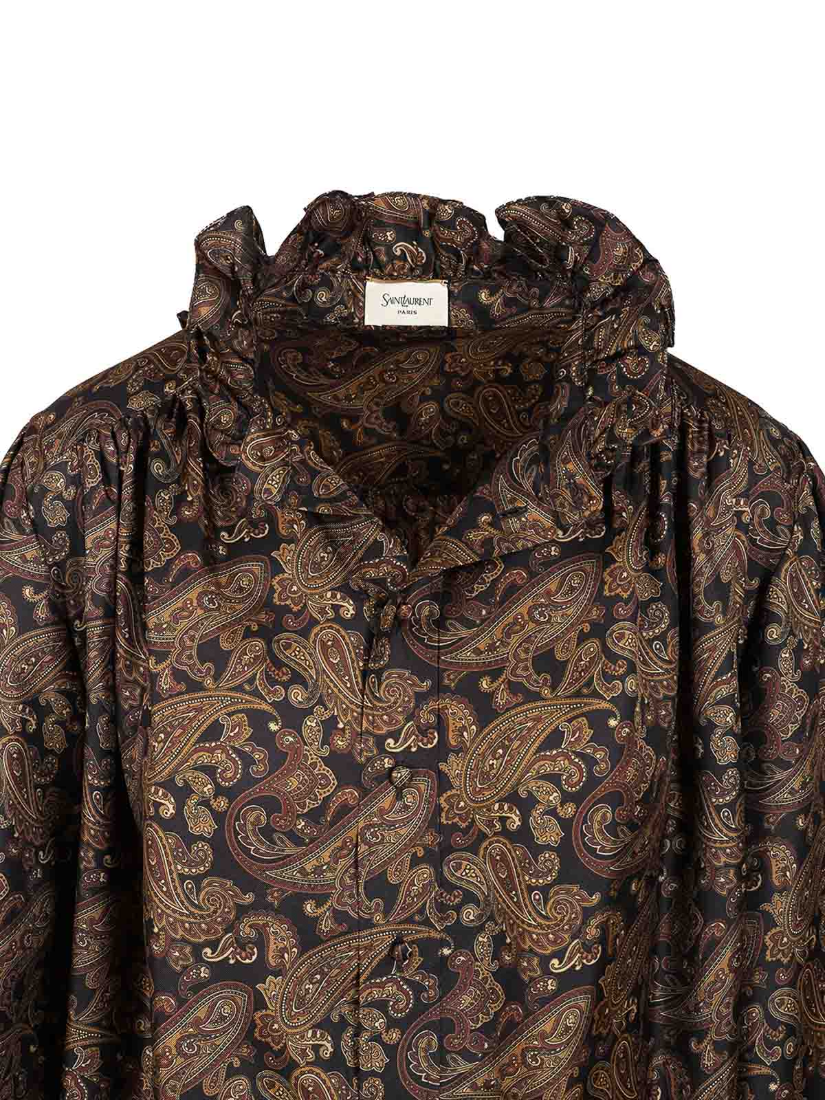 SAINT LAURENT: knee length dresses - Paisley Pattern Silk Twill Dress