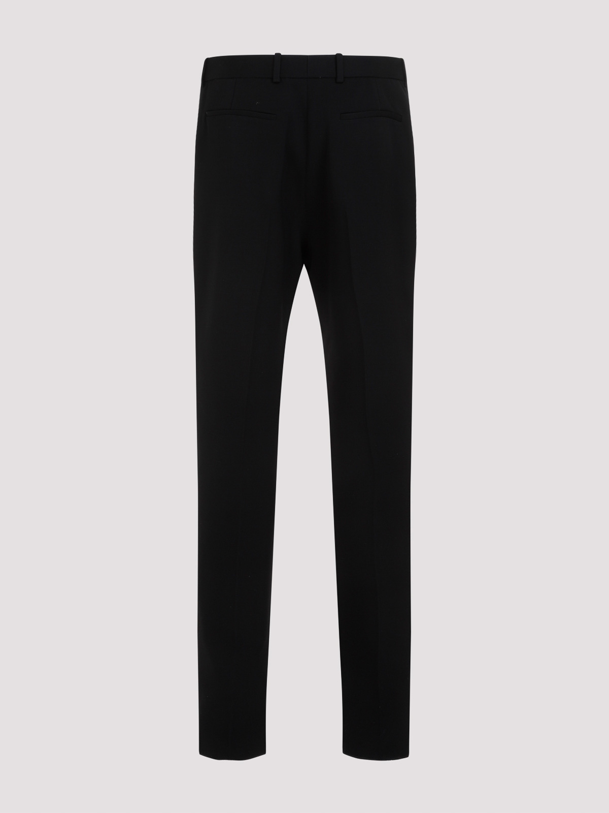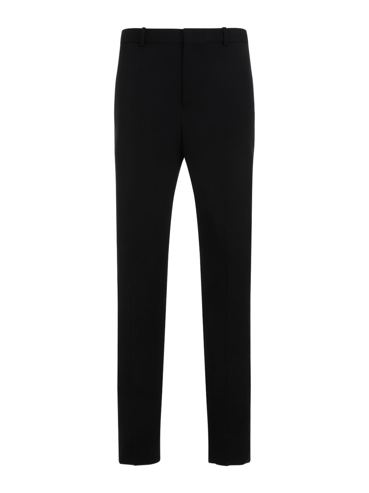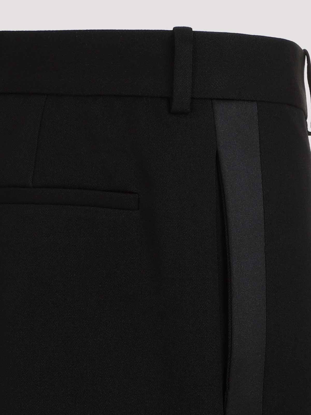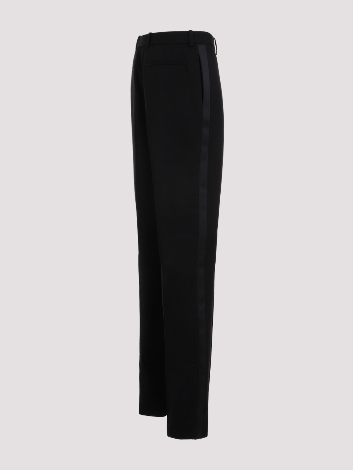 Saint laurent black wool trouser tux. pure black wool trousers, hook and zipped front fastening, belt loops, side pockets with black silk trims, back slit pocket, straight hem.