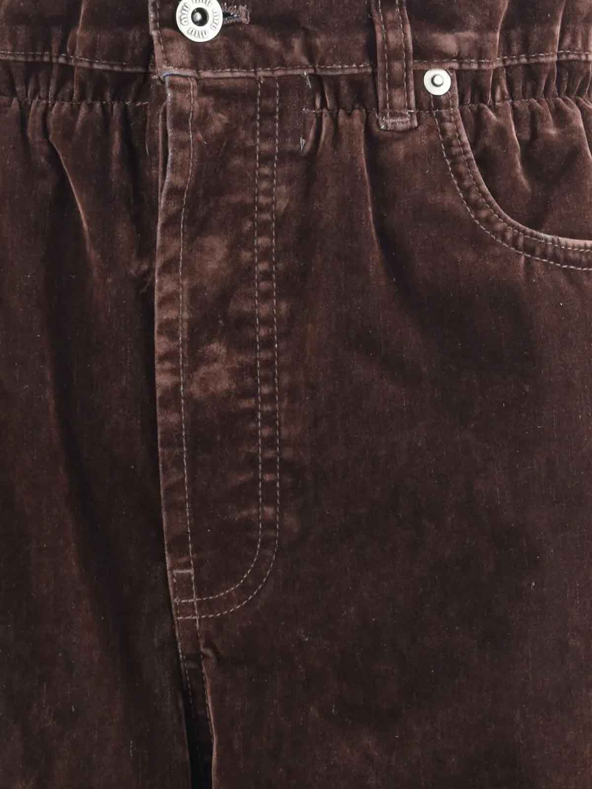 Brown, velvet texture, elasticated waistband, front pockets, back pockets