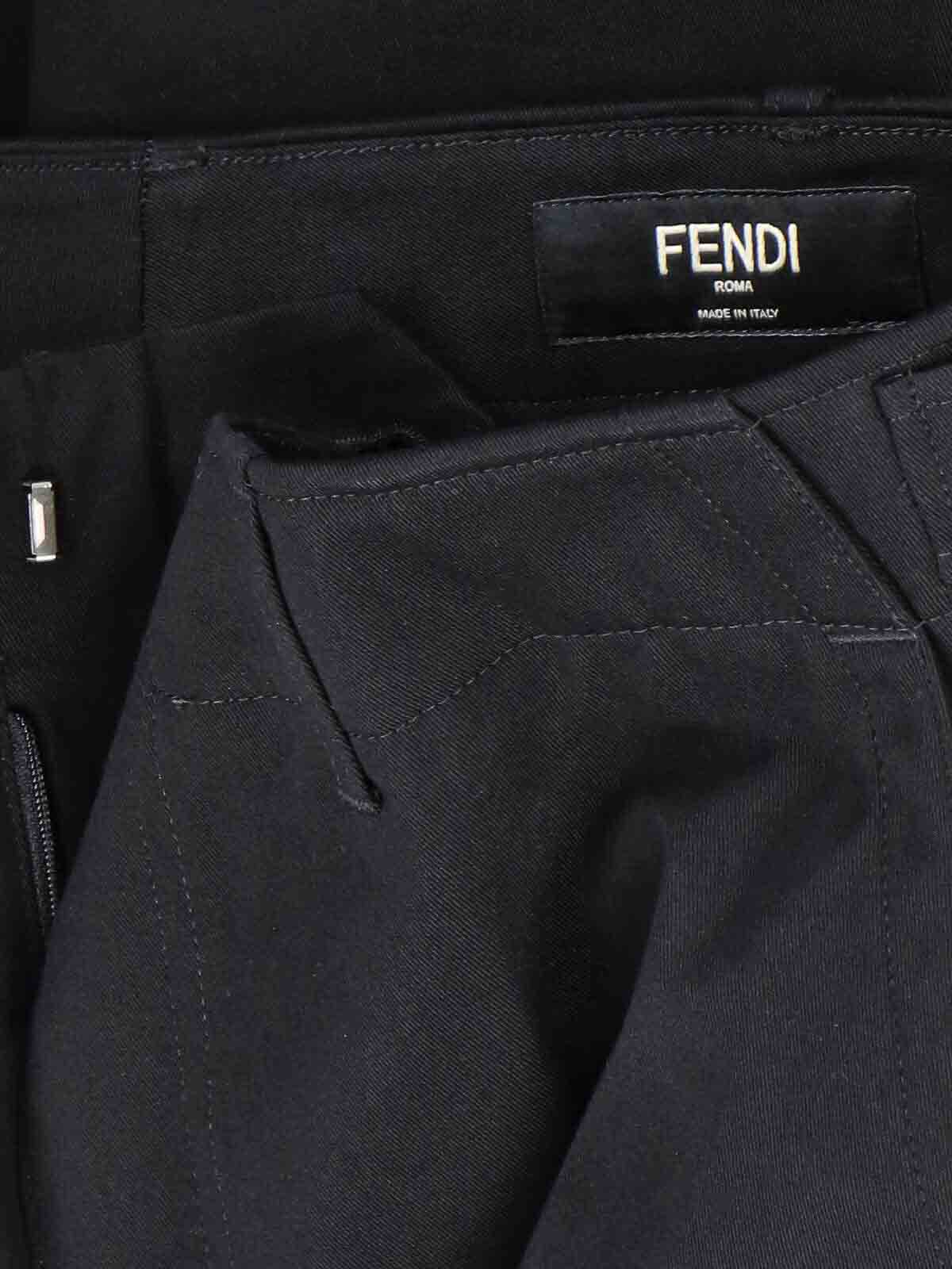 Fendi ff trousers, in black cotton, medium waist, belt loops, hook and zip closure, adjustable buttons on the waist, two side pockets, one side cargo pocket, tone-on-tone embossed ff logo, two back pockets, straight leg.