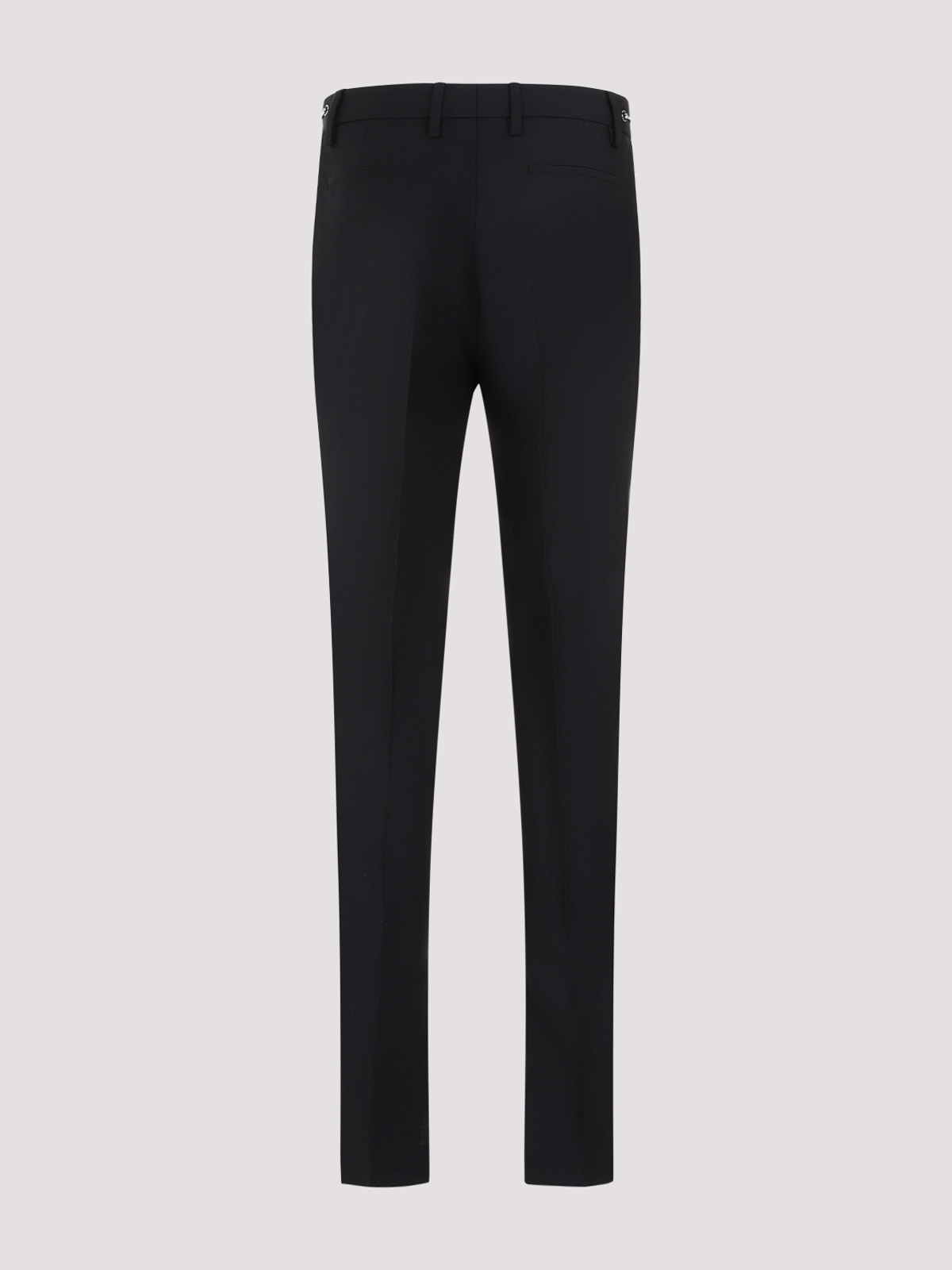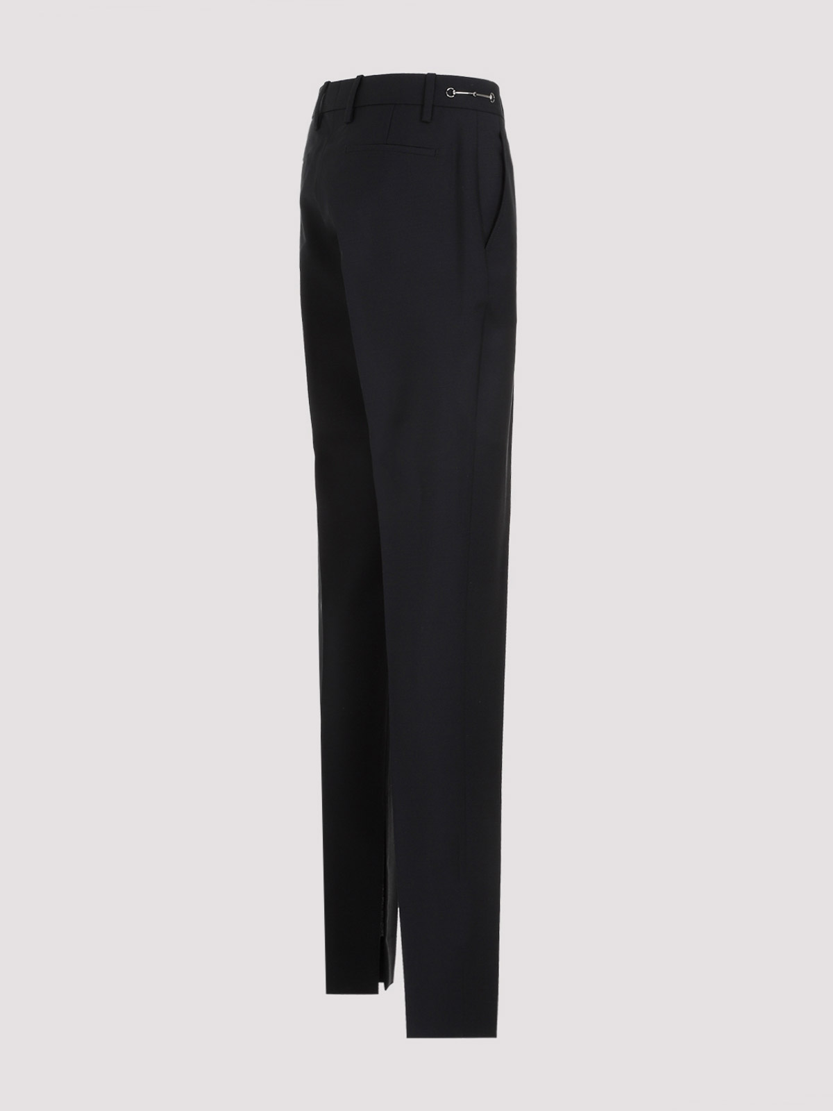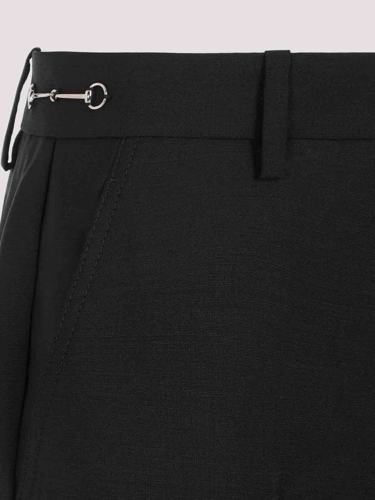 Gucci black mohair pants. crafted in mohair and wool blend. frotn concealing zipped and hook fastening, belt loops, side pockets, side silver-tone metallic signature buckle, back slit pockets, straight hem.