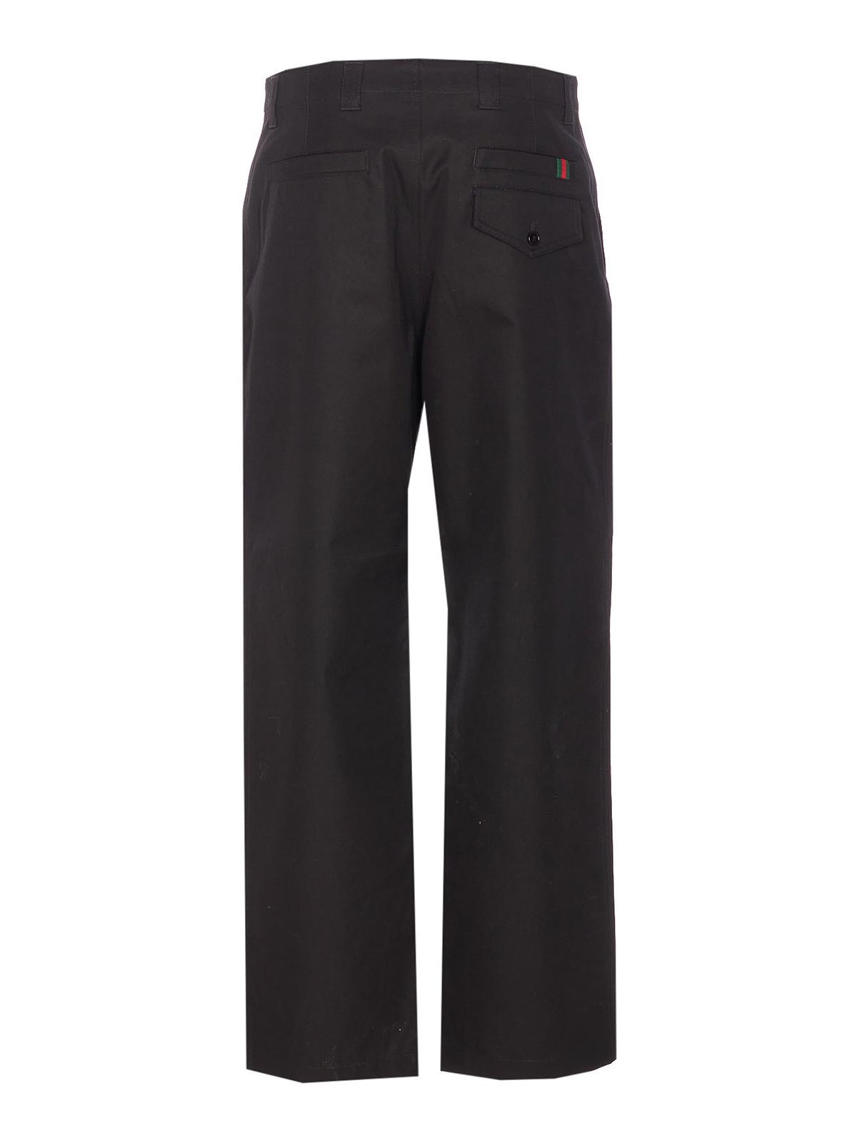 Gucci black pants, zip and button closure, pockets, web logo detail on the detail on the back, wide leg