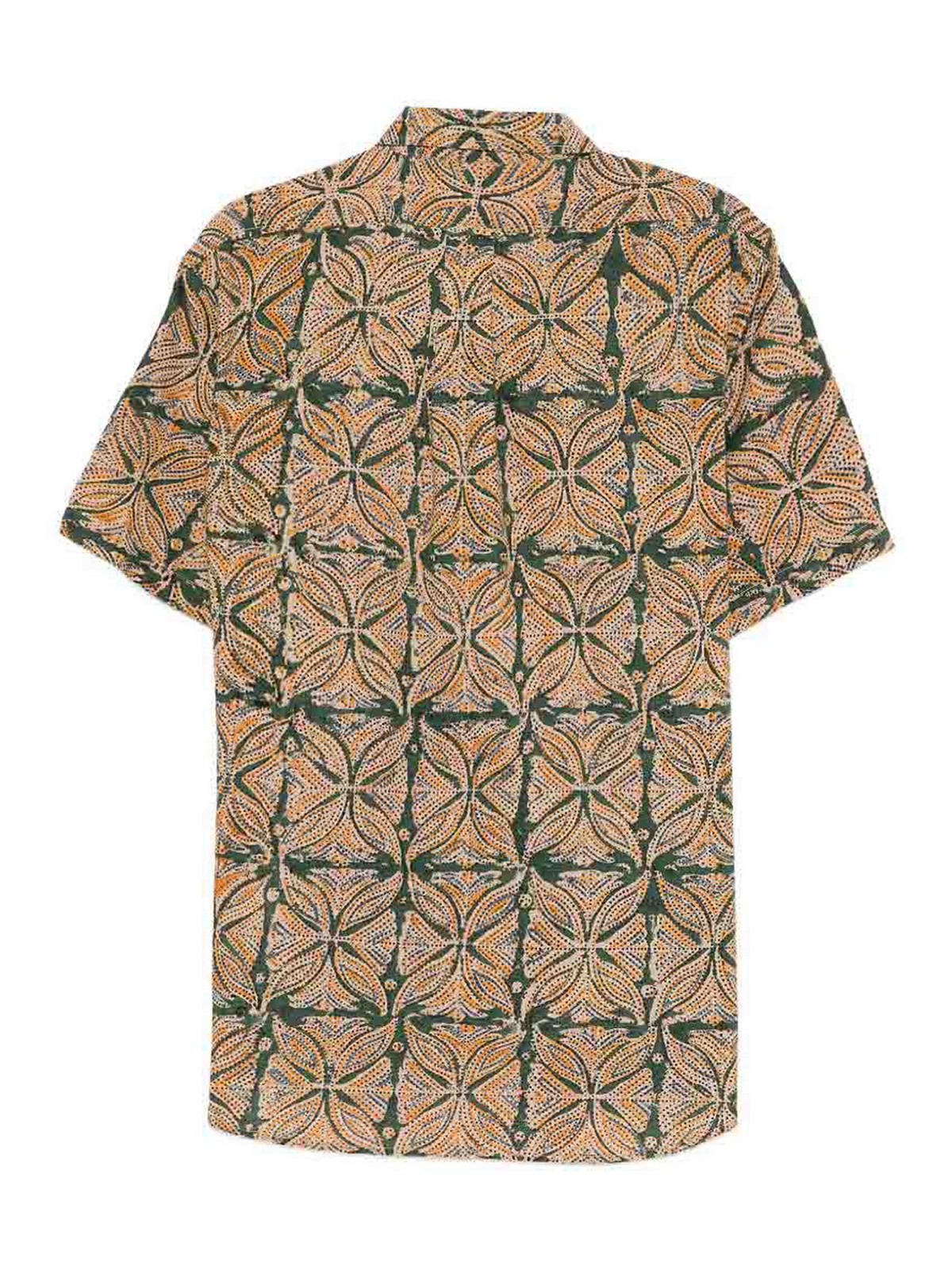 Green and blue button fastening short sleeves all-over pattern classic collar buttoned cuffs