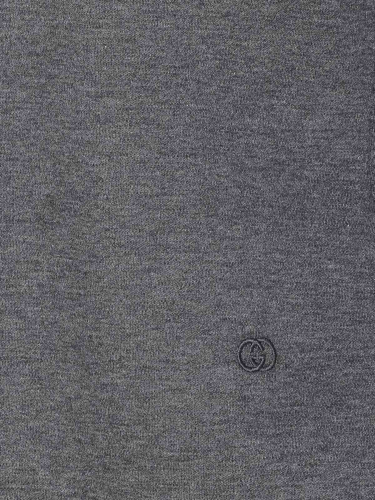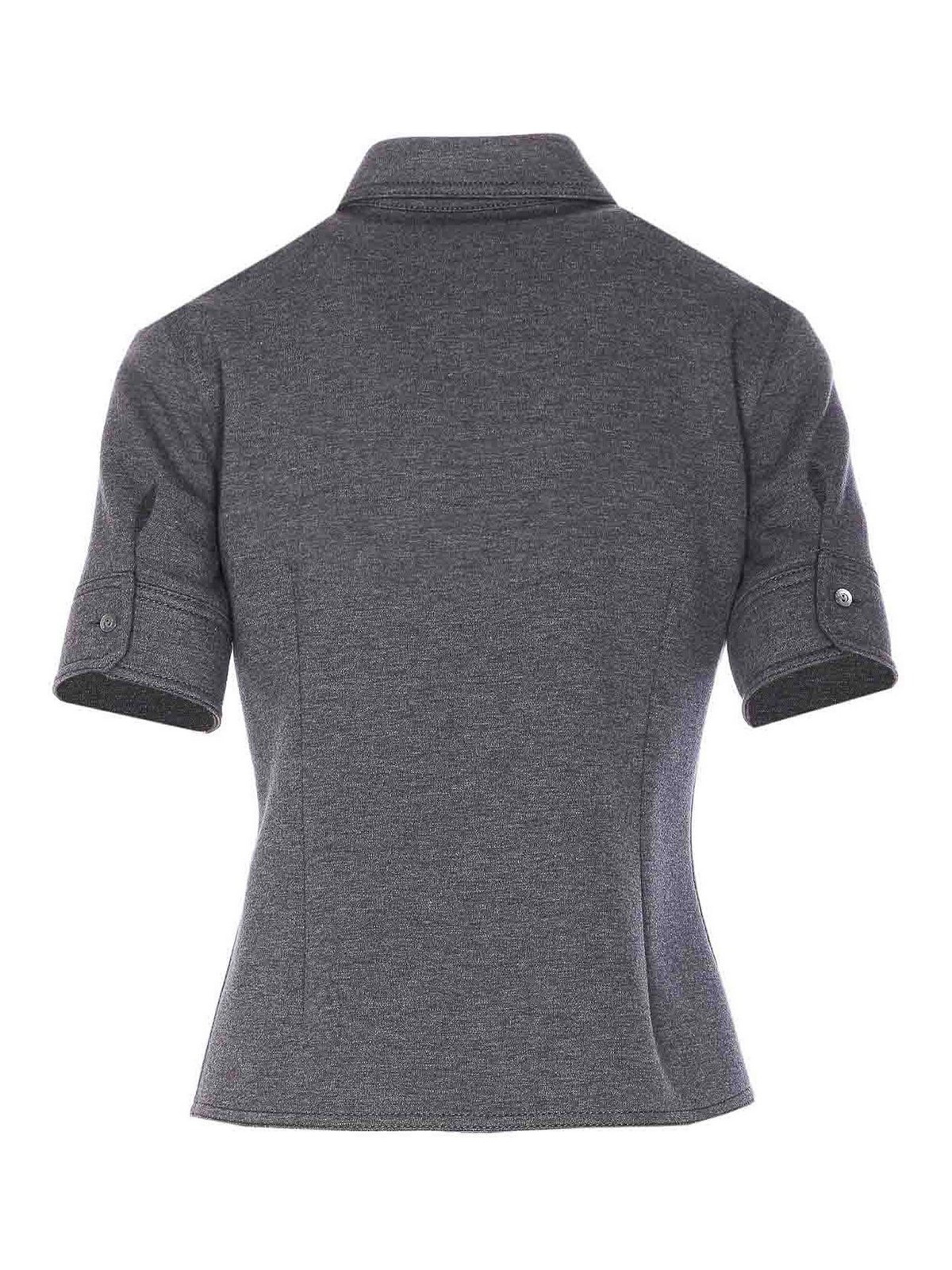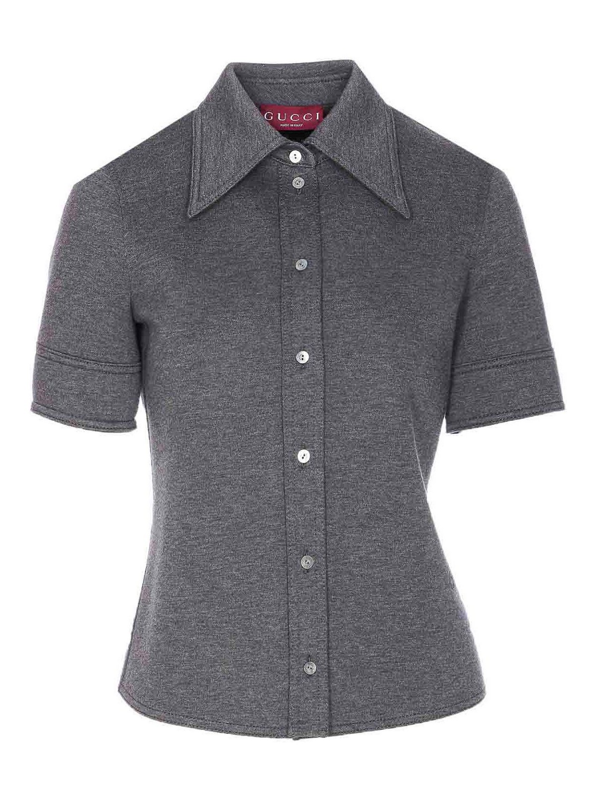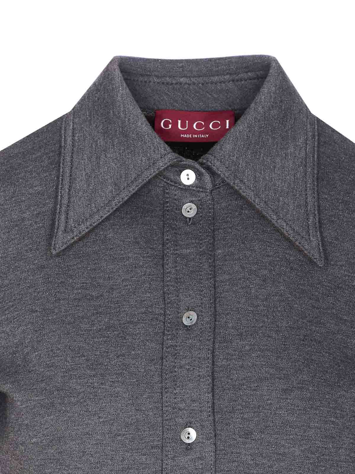 Gucci grey knitted shirt with frontal buttons closure, long sleeves, collar, short sleeeves, embroidered logo on the front
