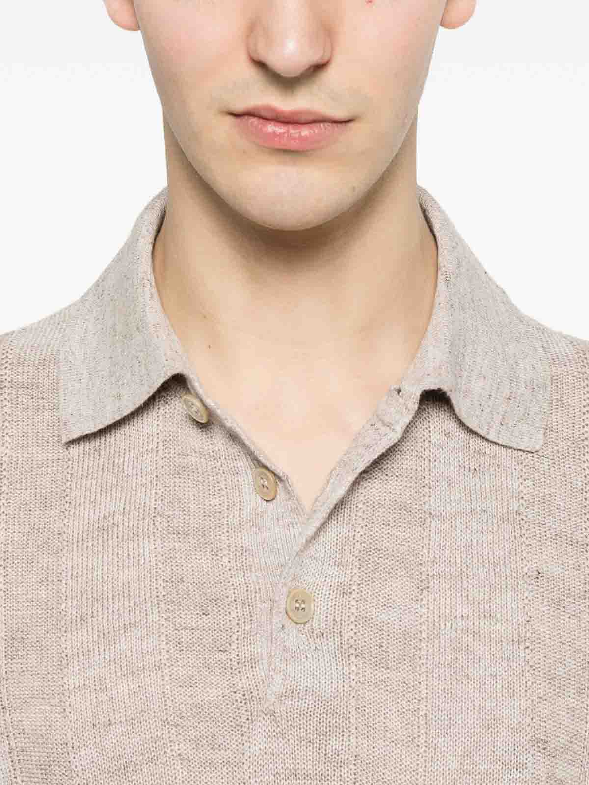 Beige ribbed sweater with buttons and short sleeves origin: Italy composition linen 77%, cotton 23%.
