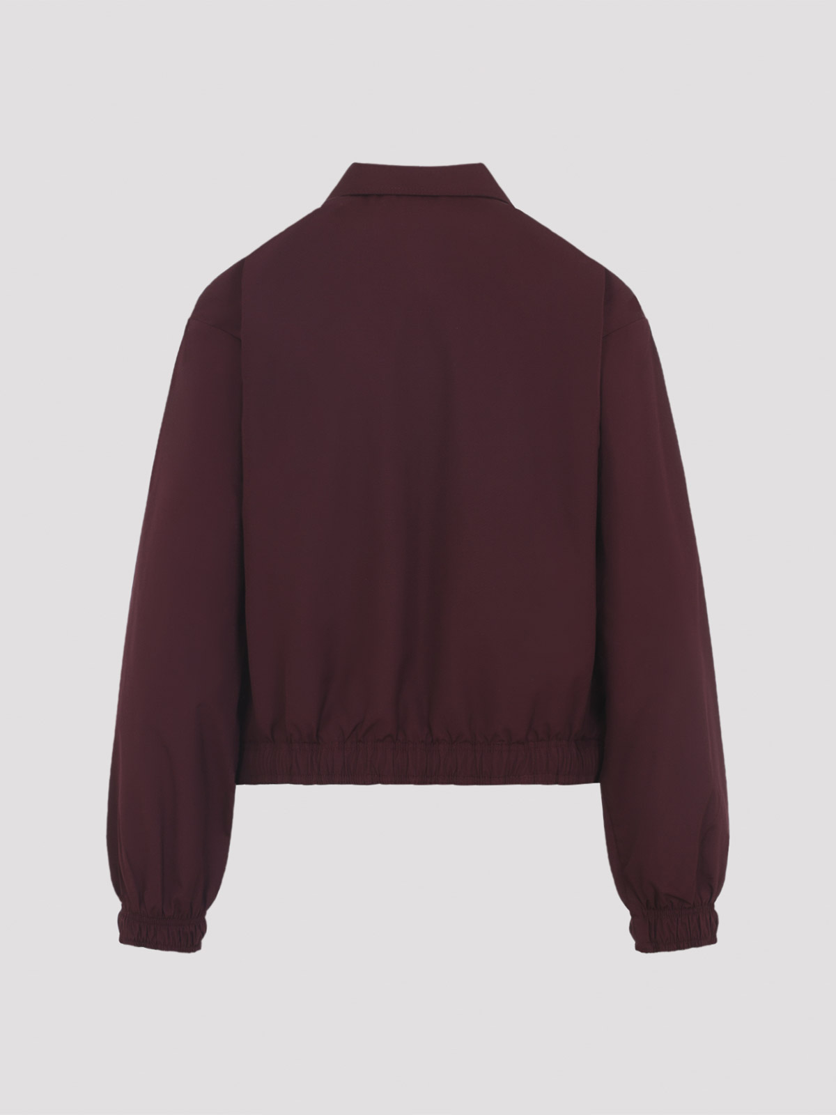 Prada red polyester jacket. crafted from dark red tech fabric, featuring a pointed collar, front zip fastening, a patch pocket with the enamelled triangle logo detail, dropped shoulders, long sleeves, elastic cuffs and hem, a drawstring at the hem, and a full lining.