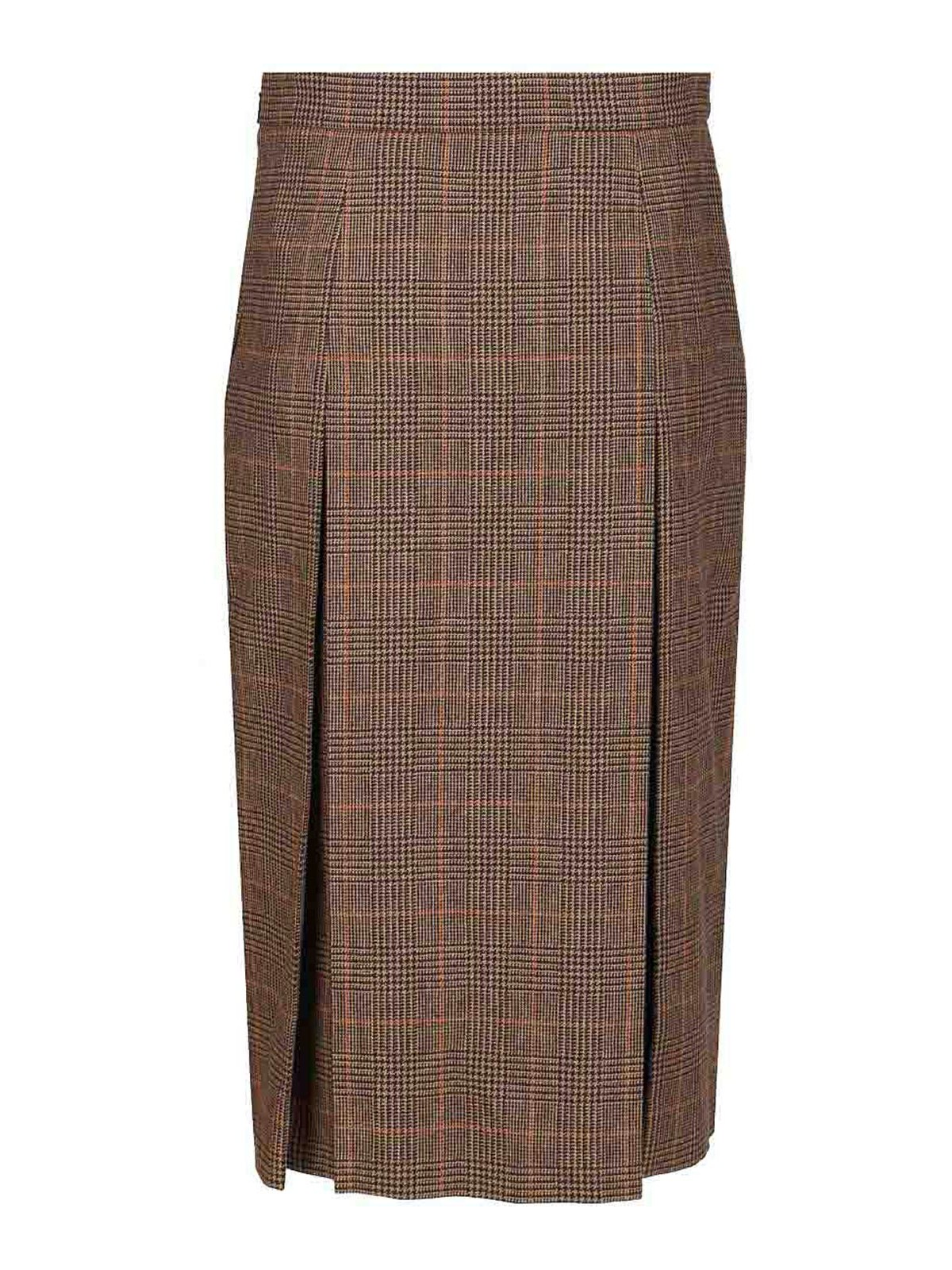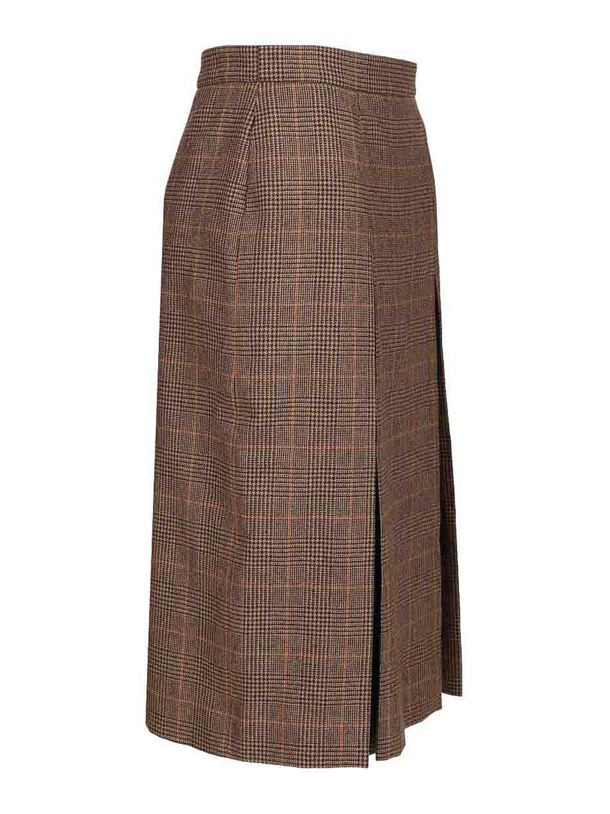 Saint laurent prince of wales and midi skirt with inverted square pleat hidden zip at the side and hidden side pockets