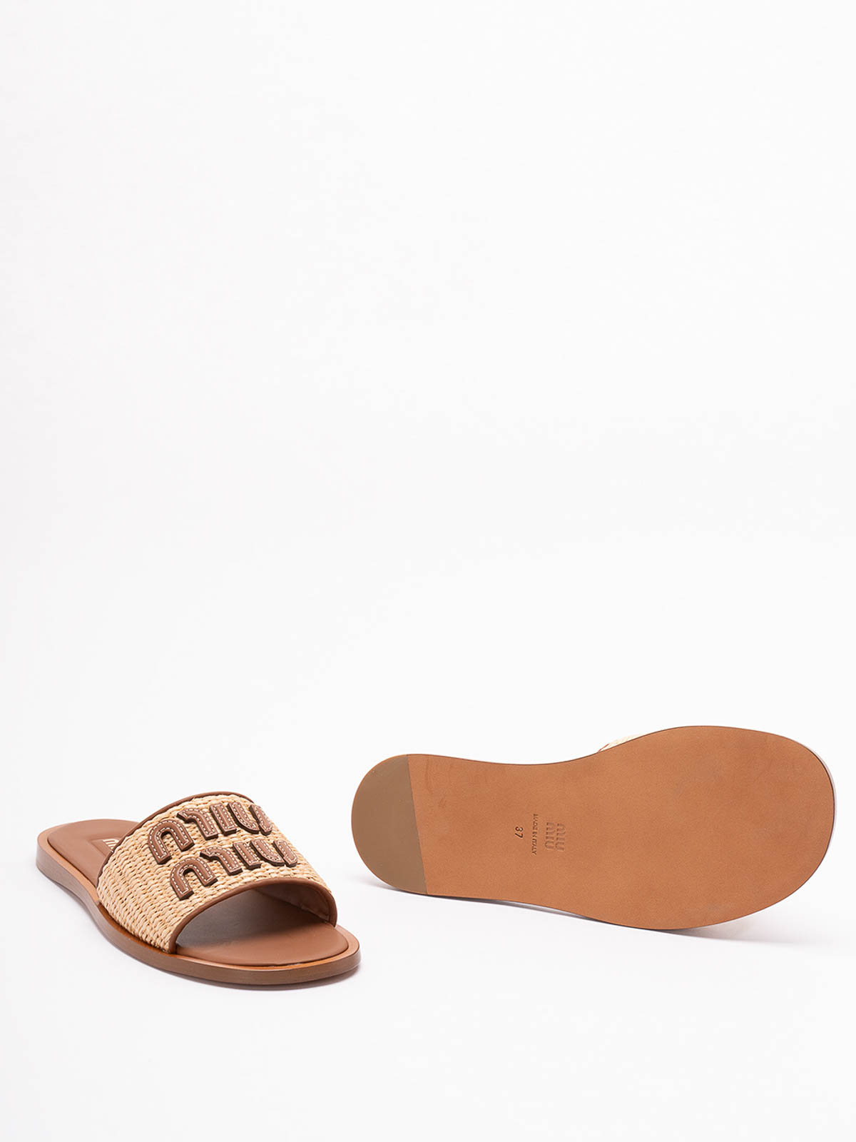 MIU MIU: sandals - Raffia-Effect Woven Fabric Slides