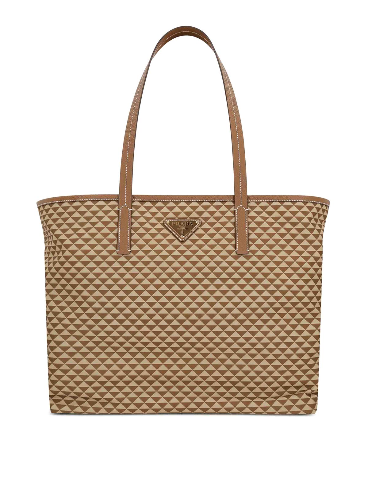 Caramel brown two flat top handles triangle logo geometric, pattern print