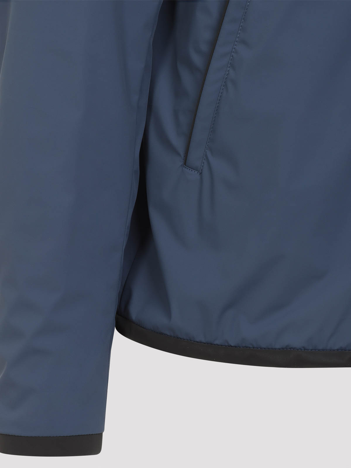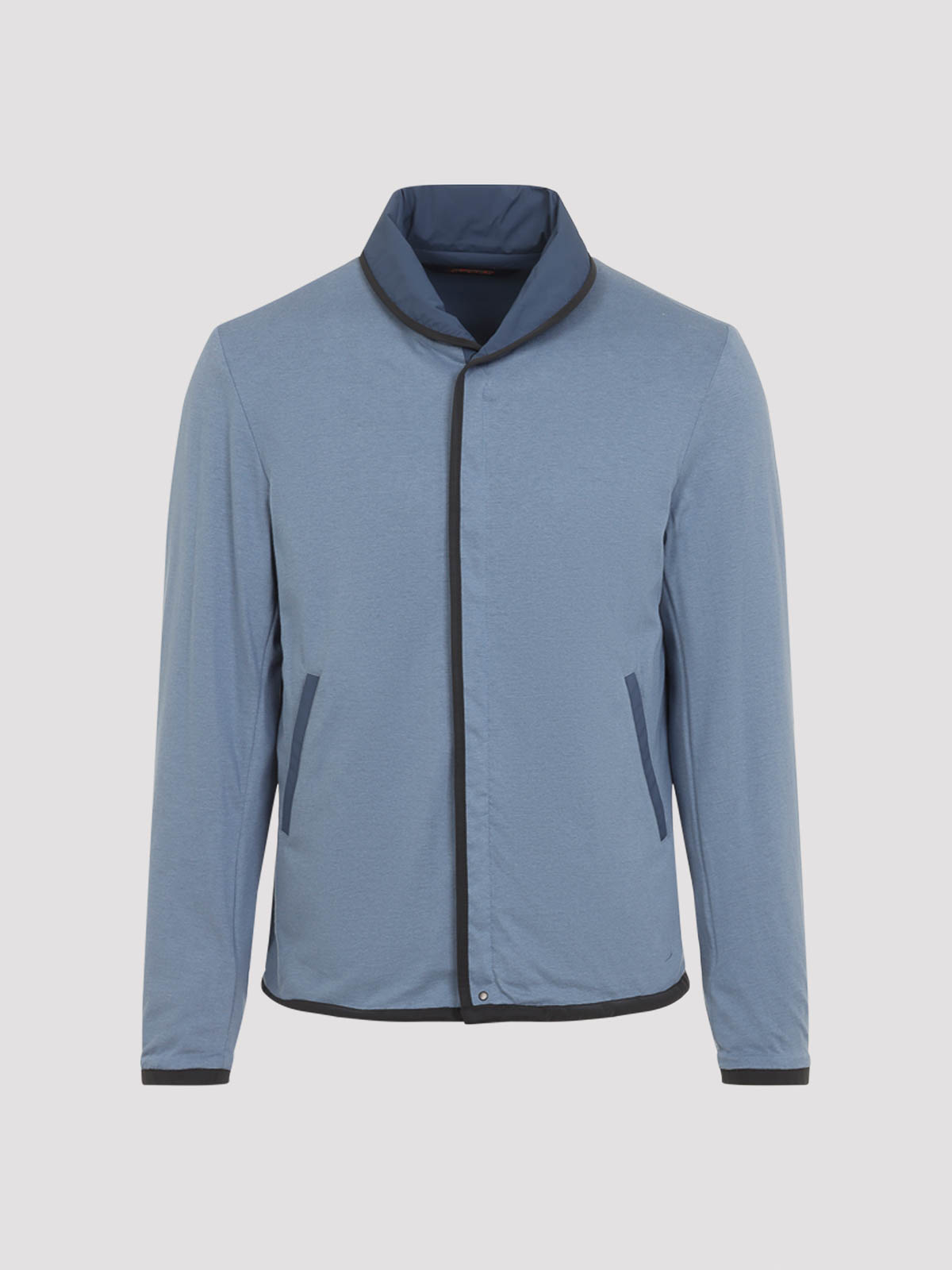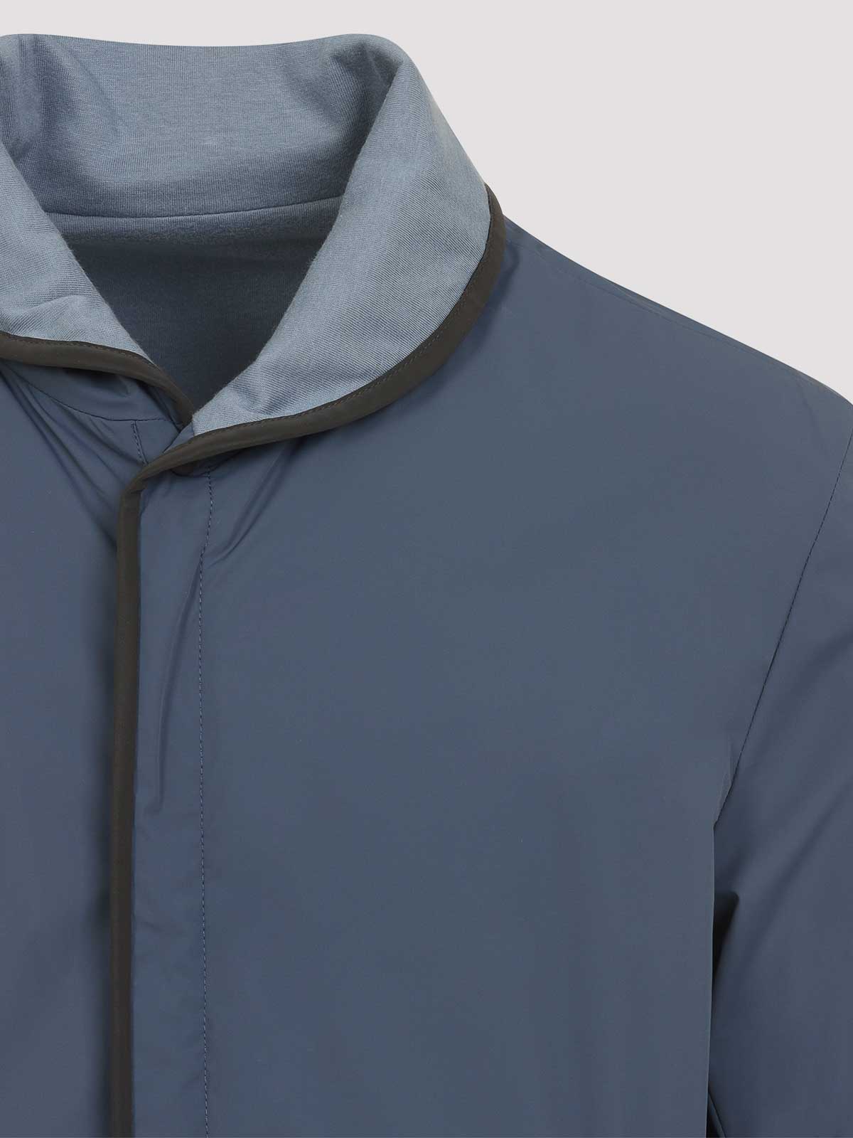 Sease reversible blue nylon jacket. reversible jacket, one side is crafted from blue water-resistant nylon, and the other is crafted from light blue cotton and cashmere, featuring a rounded collar, a concealed zip and button fastening, two front pockets, a concealed drawstring at the hem, and reflective trims.