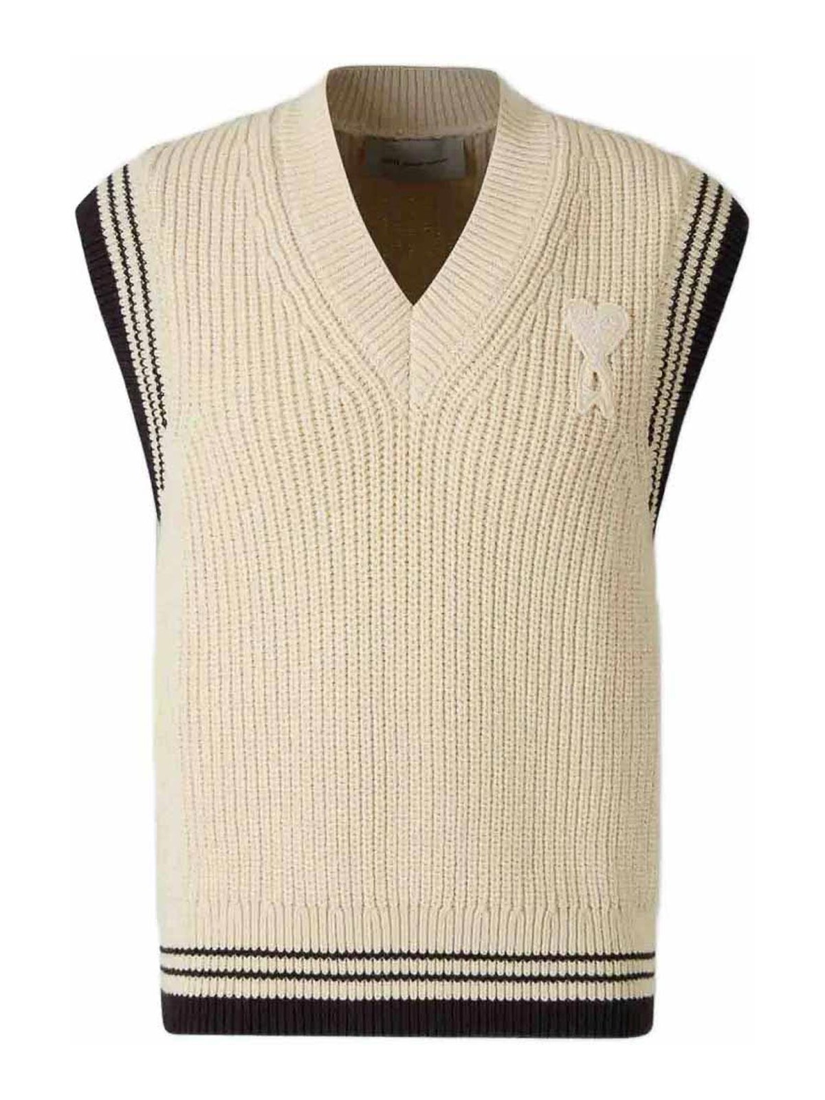 AMI PARIS: vests - Ribbed V-Neck Knit Vest