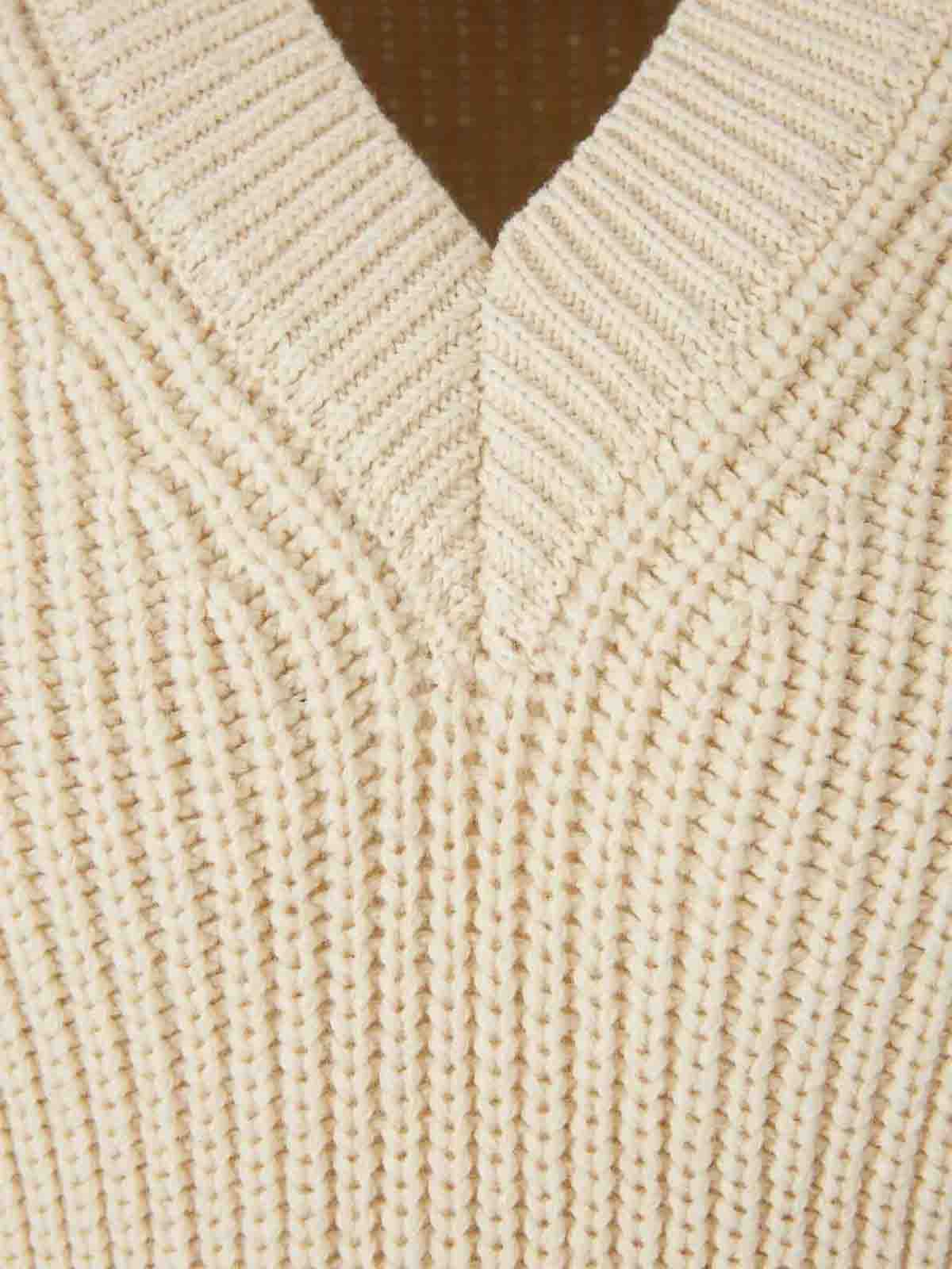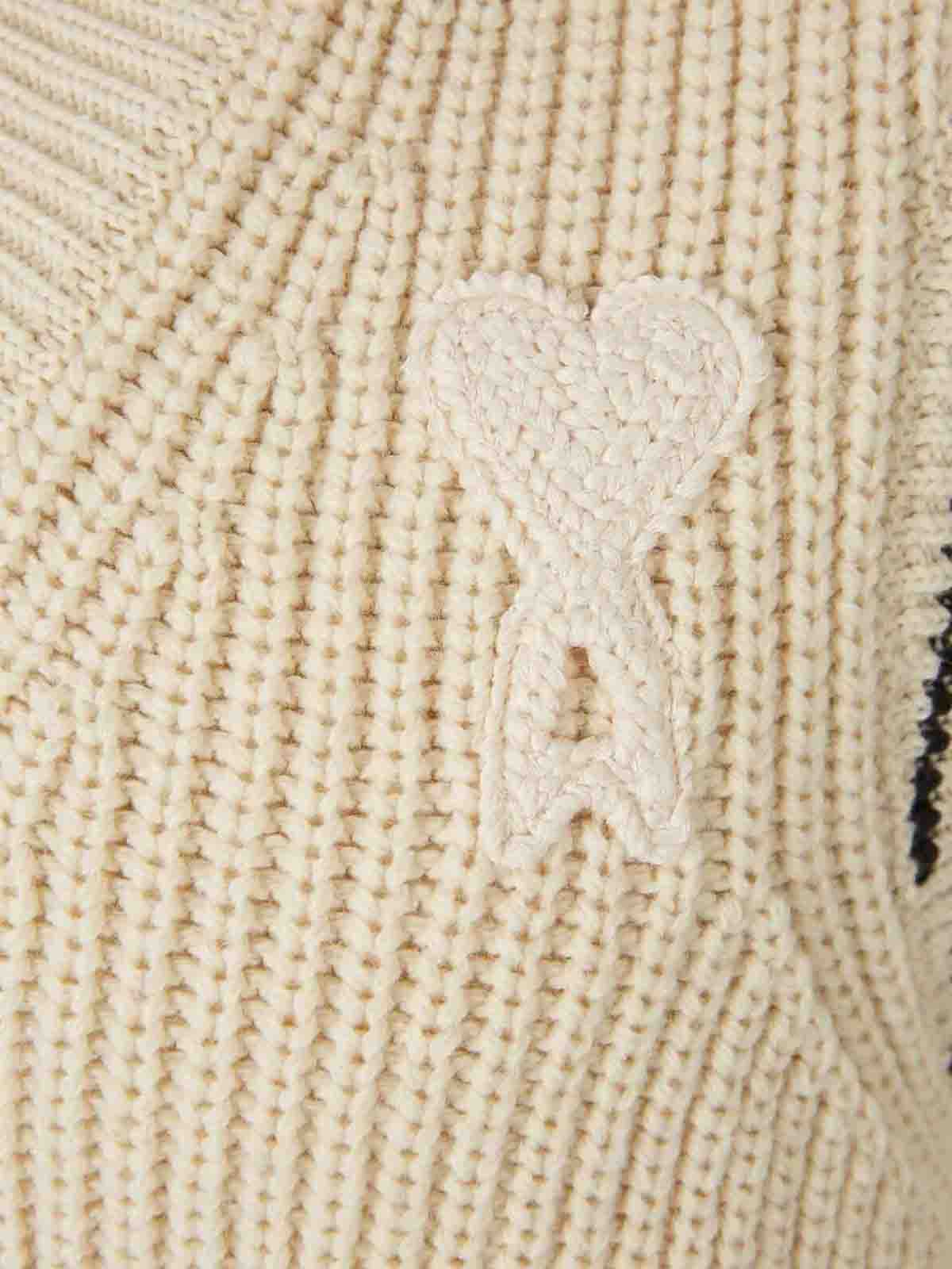 Designer cream, blend ribbed knit v, neck contrasting trims heart logo motif