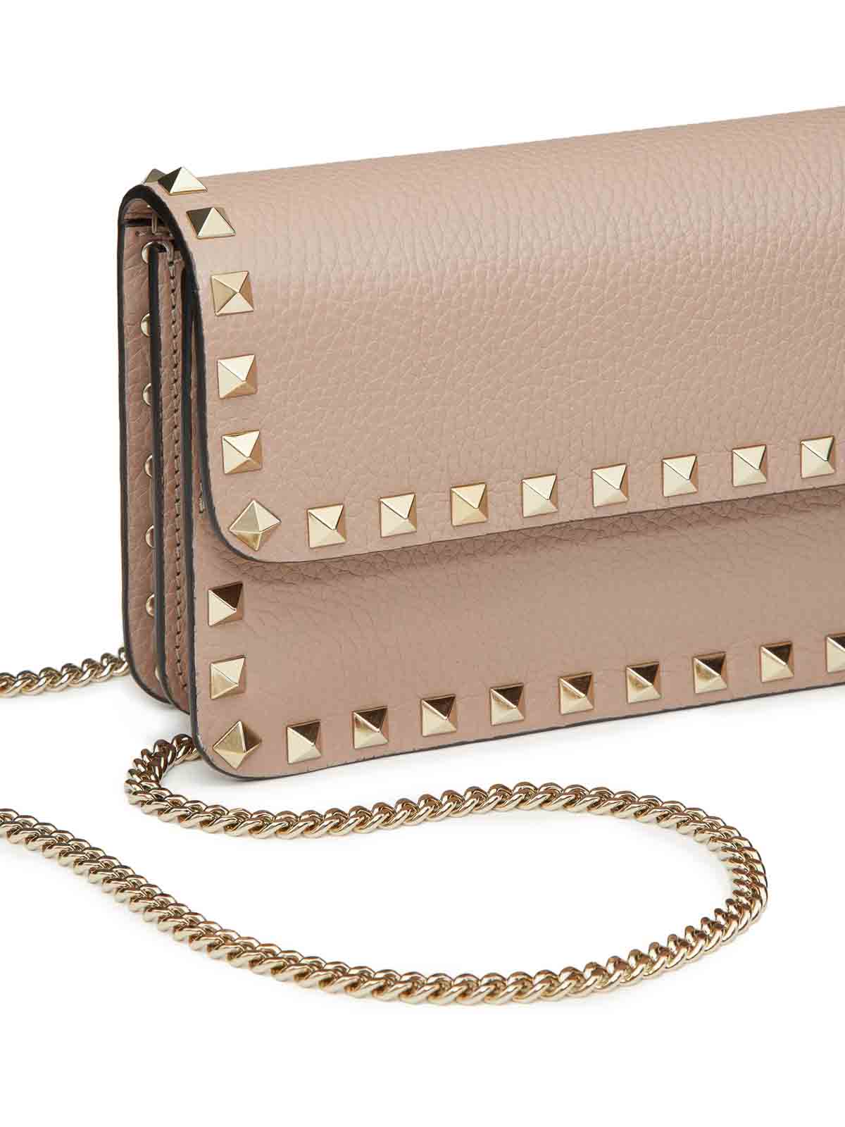 VALENTINO GARAVANI: clutches - Rockstud Chain Pouch In Garnet Calfskin