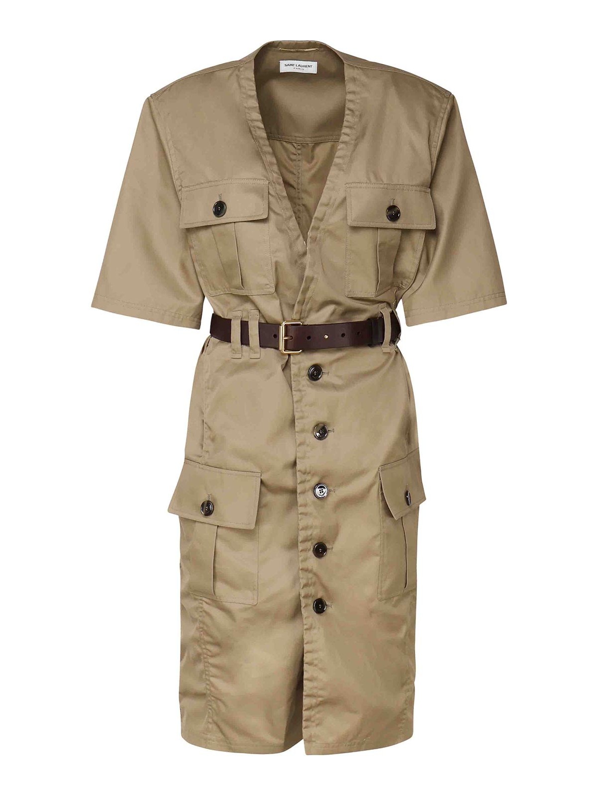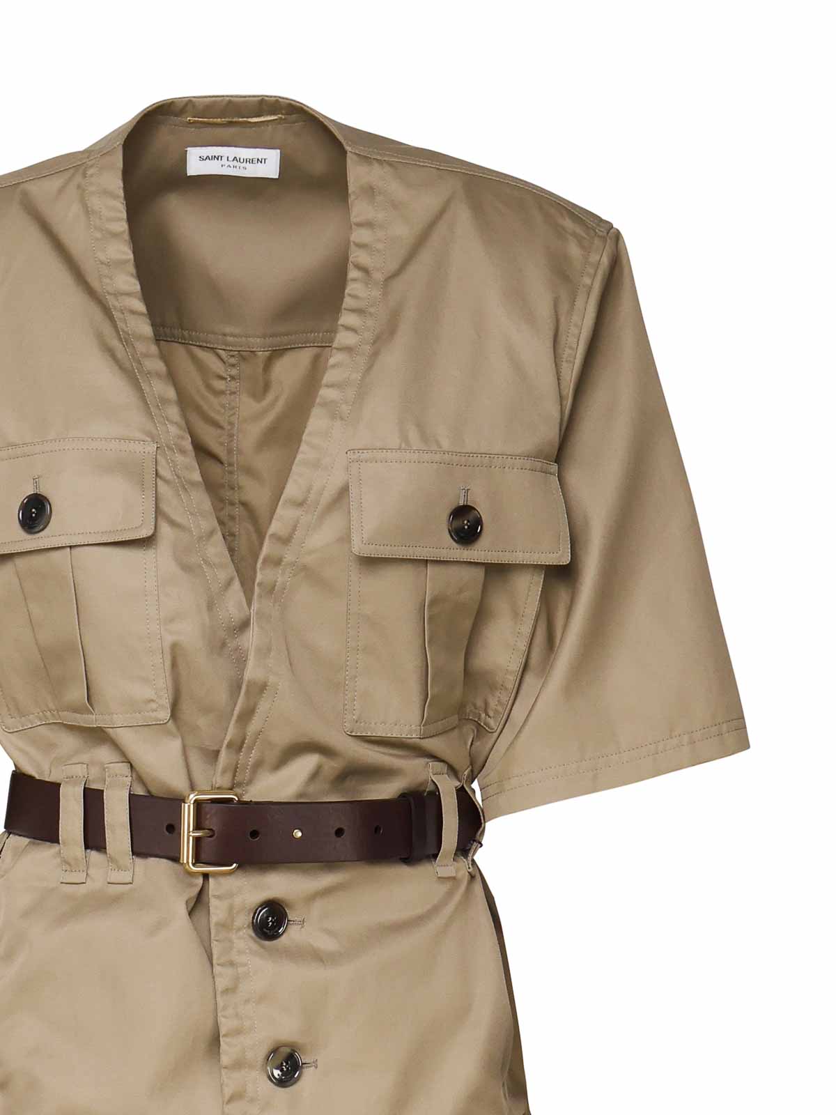 SAINT LAURENT: knee length dresses - Saharienne Dress In Cotton Twill