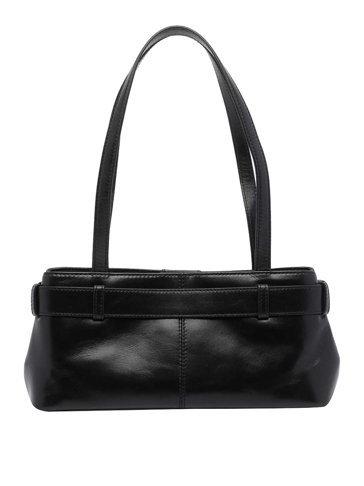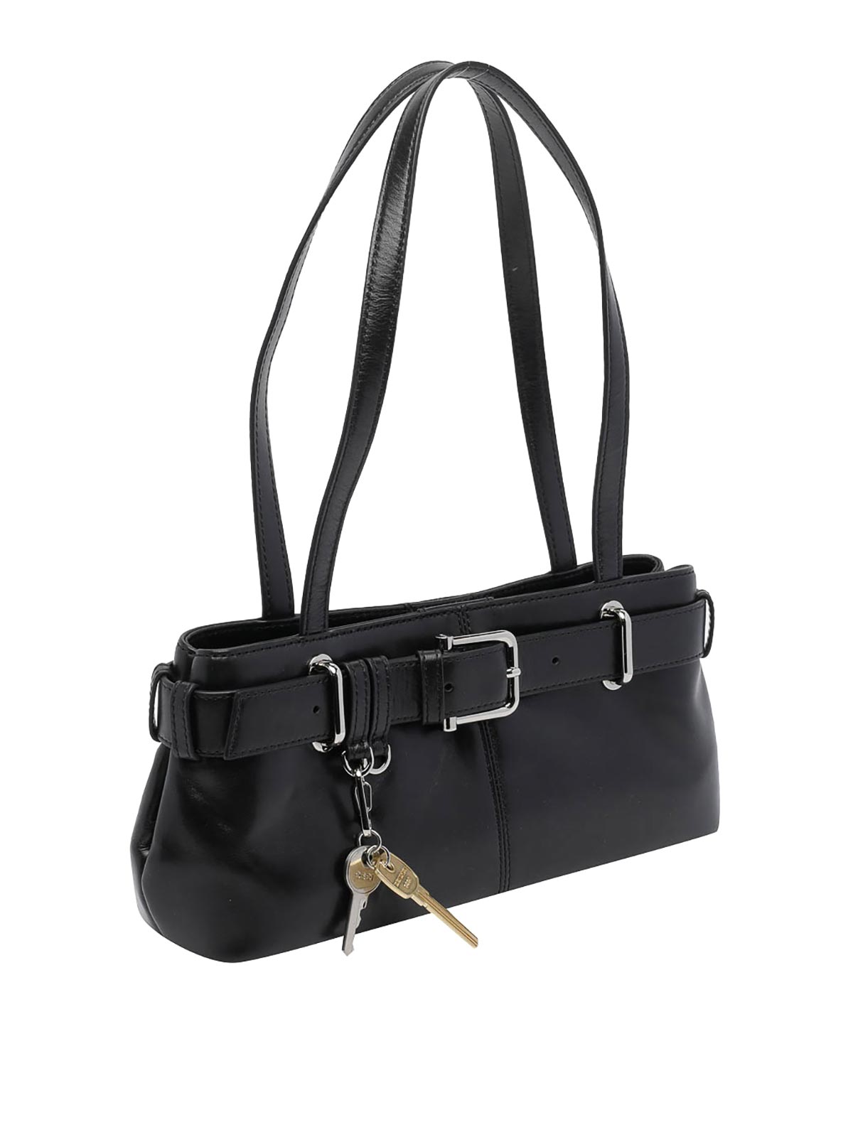 Osoi black shoulder brocle mini shoulder bag, magnetic closure, inner open pocket, 2 handles, charm detail