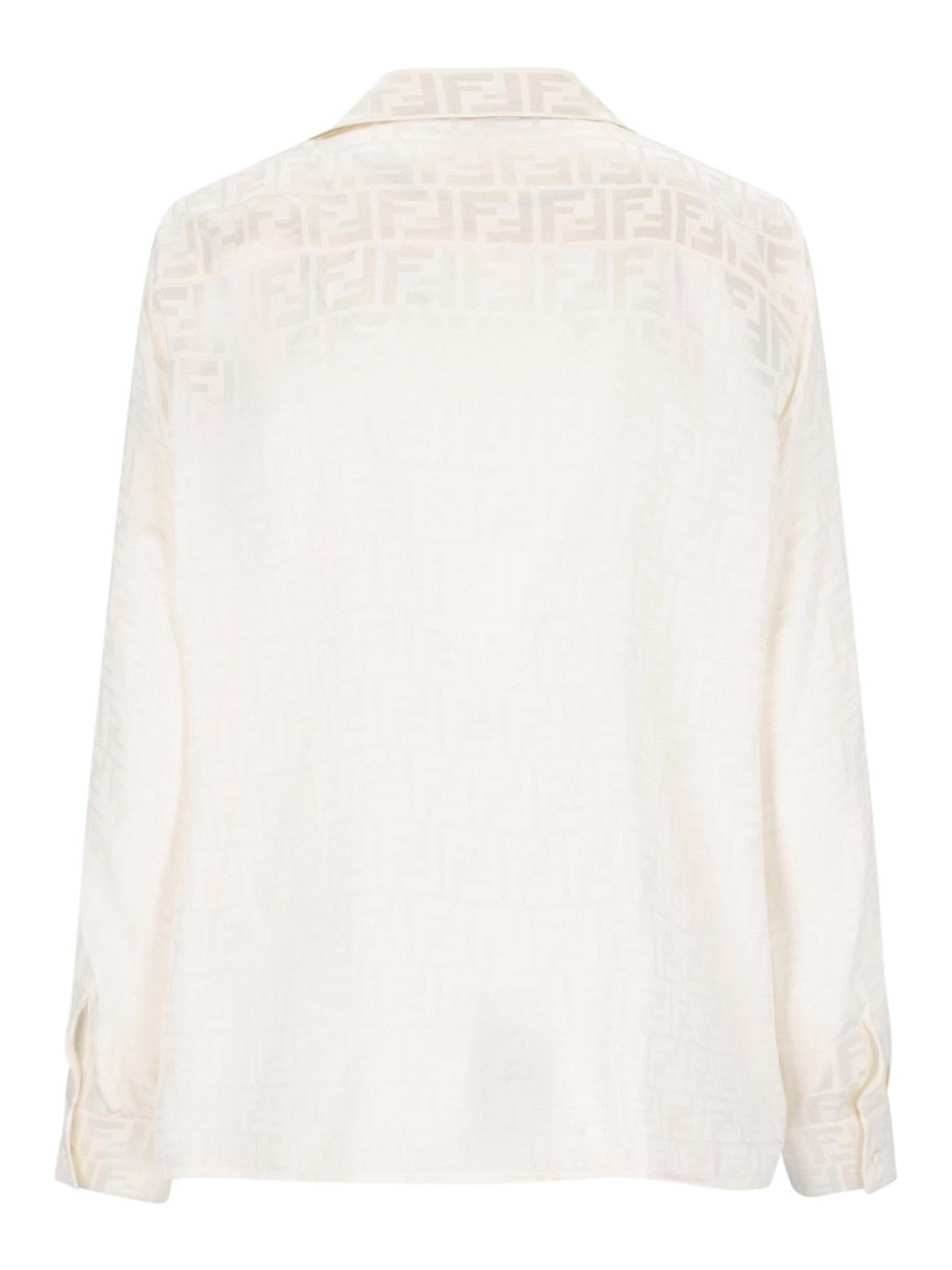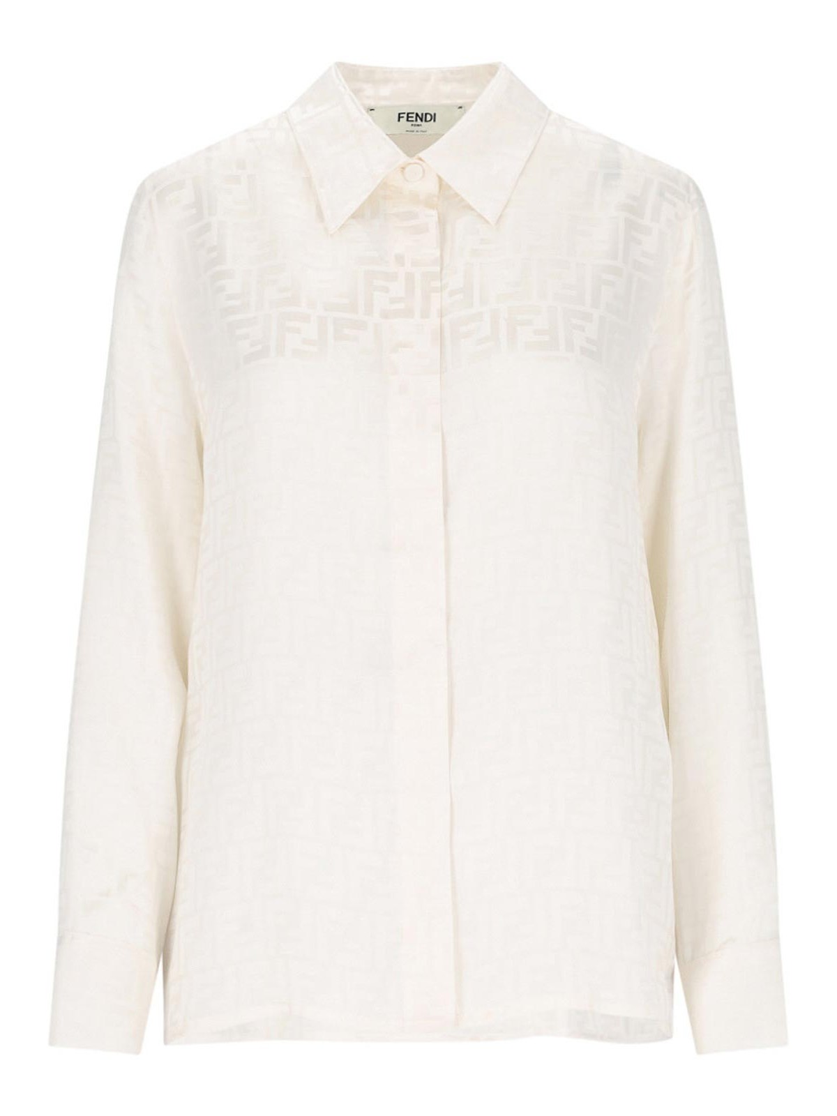Fendi ff silk shirt, cream, tone-on-tone all-over jacquard logo motif, classic collar, button closure, cuff buttons, straight hem.