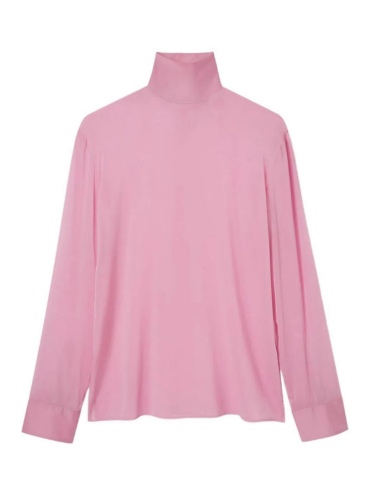 Men's stretch silk chiffon sweater with high neck, characterized by a light and refined texture. The Bright Pink color gives a bold and contemporary touch.