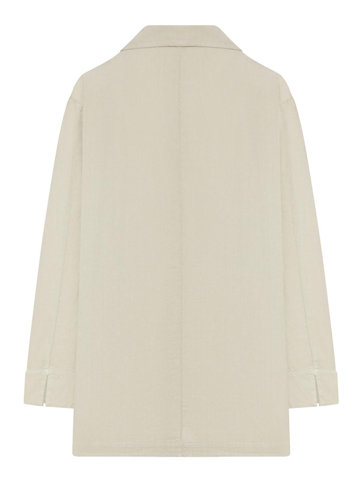 single-breasted blazer, notch lapel, deep neckline, single-button front closure, slightly dropped shoulders, long sleeves with straight cuffs, small slit at the bottom, two front patch pockets, straight fit, relaxed fit, color: sand