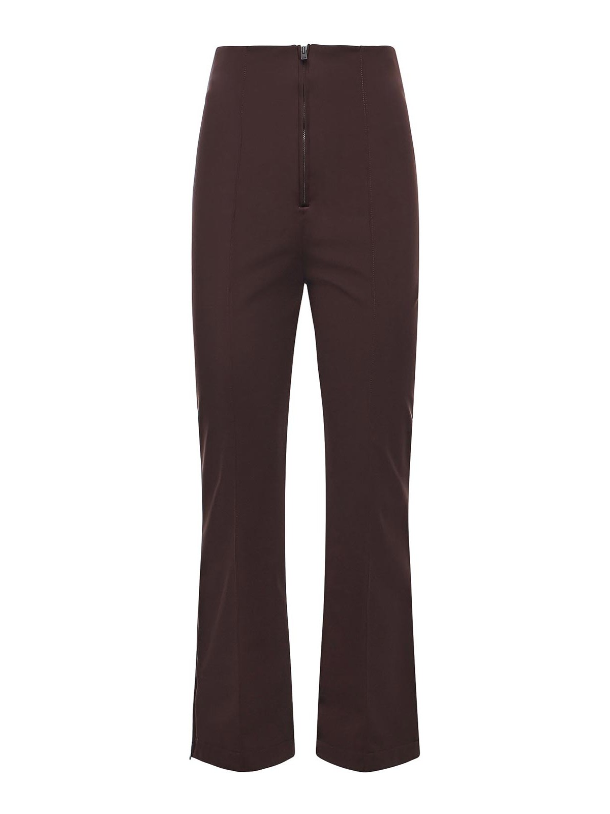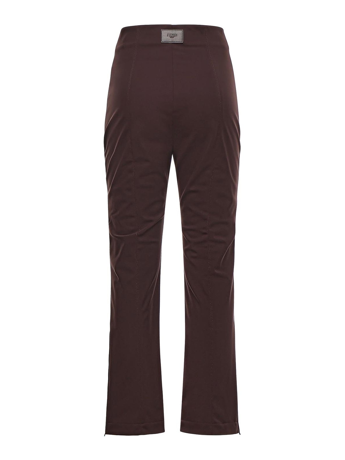 made of technical fabric, front zip closure, high waist, size shown in photo is 38, made in italy, color: brown