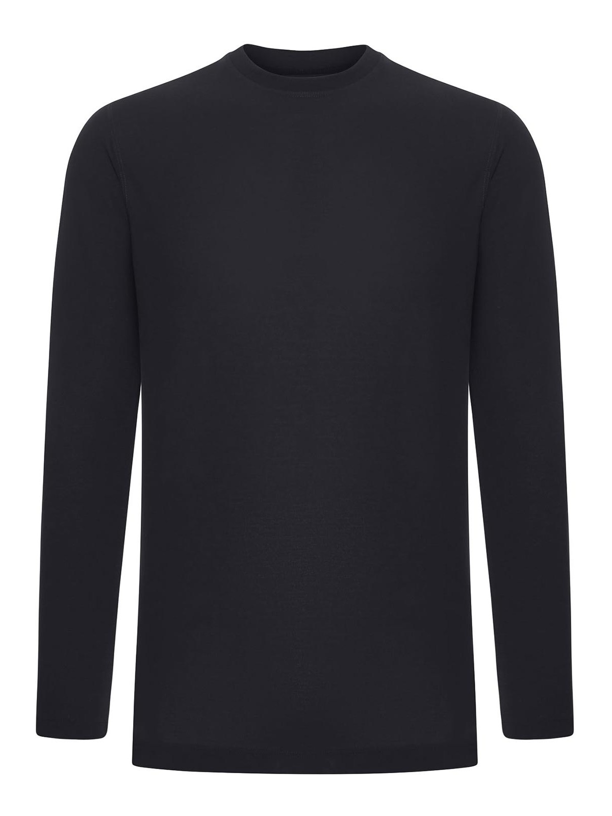 crew neck, long sleeves, straight hem, ribbed trim, slim fit, made of icecotton, an exclusive yarn with a strong, lightweight, and breathable structure, offering excellent thermoregulation properties., 100% icecotton, color: black