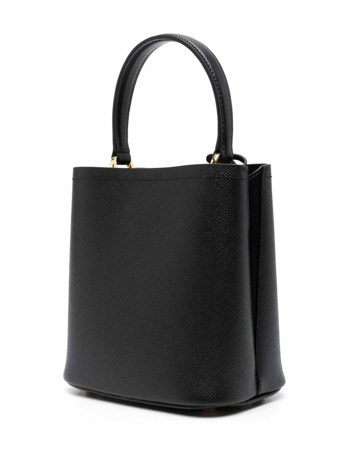 Black grained texture triangle logo to the gold-tone logo lettering to the tag logo stamp detachable transparent id slot tag feet concealed magnetic single flat top adjustable detachable shoulder strap partitioned compartment slip pocket this piece comes complete with a protective dust bag