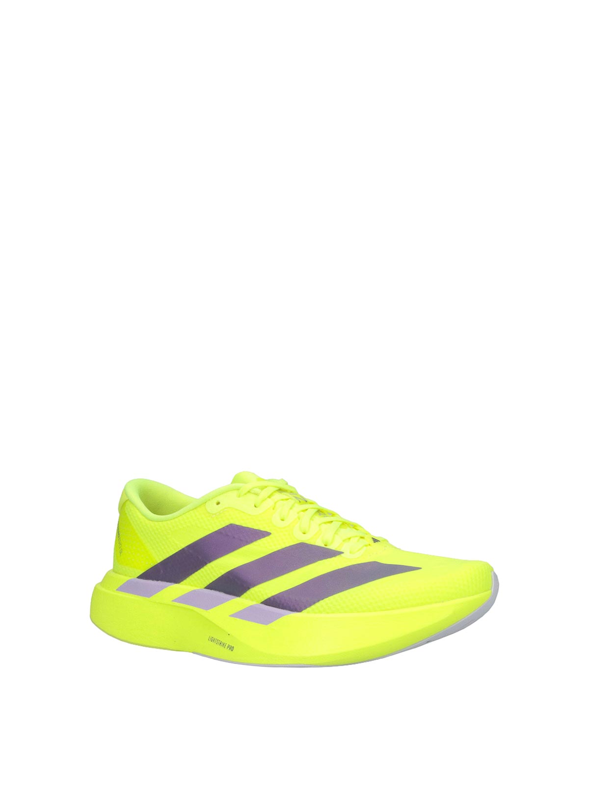 Adidas adizero evo sl adidas in yellow fabric, round toe, lace closure, tongue logo and back tab, iconic side stripes, rubber sole.