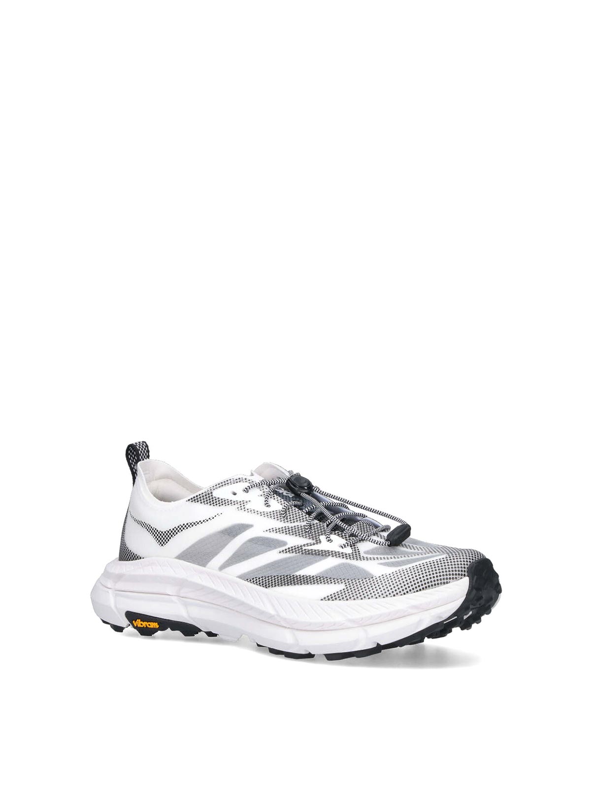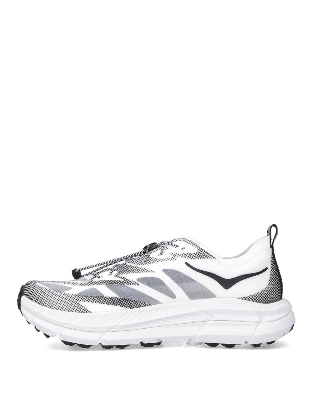 Hoka 'mafate speed 4 lite' sneaker, in white fabric, gray details, round toe, drawstring closure, vibram sole