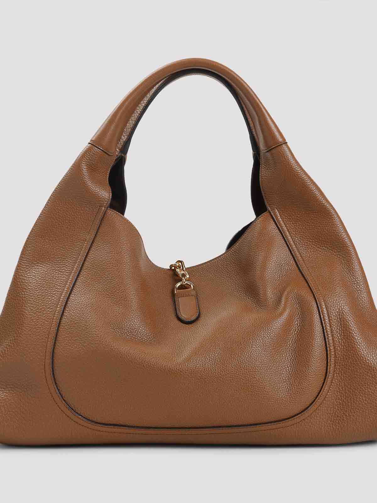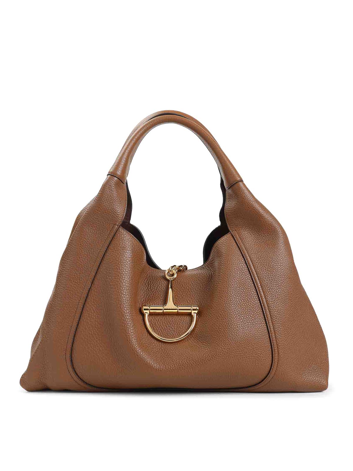 Gucci softbit brown grained shoulder bag crafted from brown grained top handles, toned horsebit magnetic zip pouch lined
