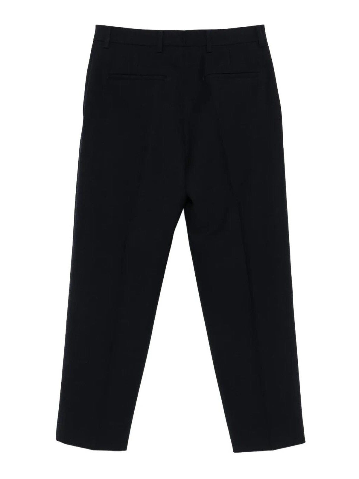 Straight leg women's trousers made of quality fabric, characterized by a clean and modern line. The blue color makes them versatile for different combinations.