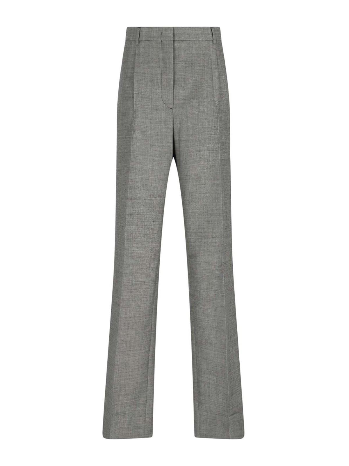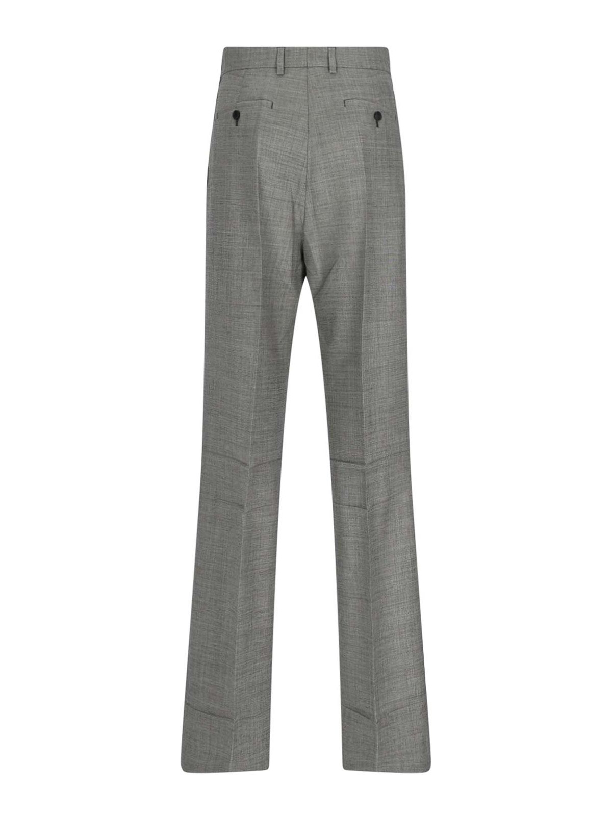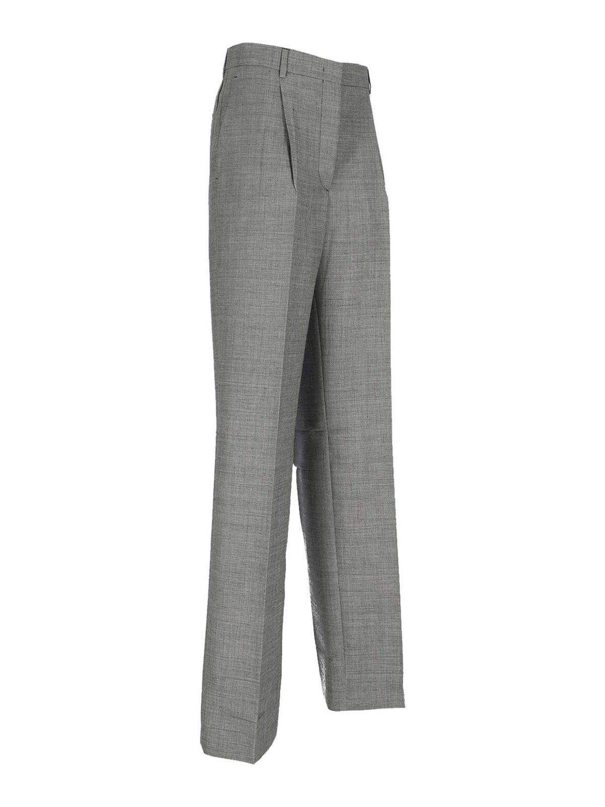 Prada straight trousers, in gray wool, high waisted, hook and zip closure, two side pockets, two back pockets, straight leg.