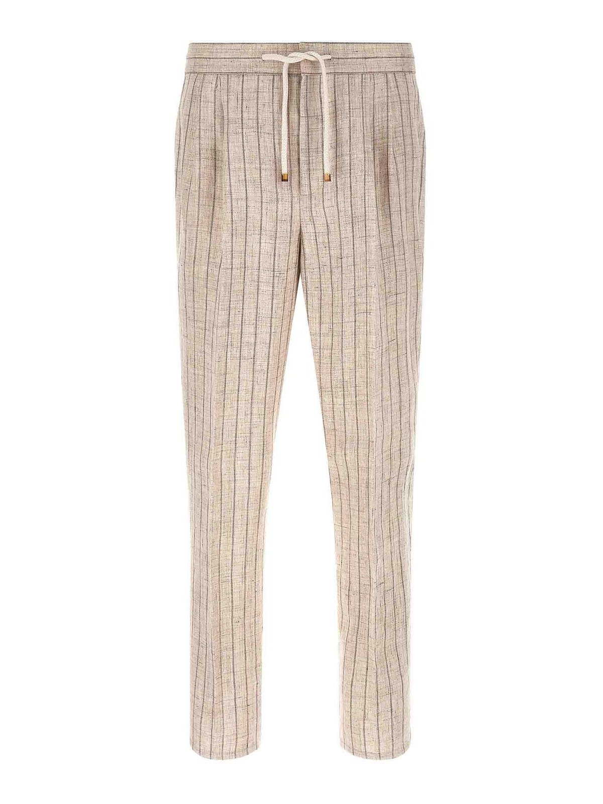 BRUNELLO CUCINELLI: casual trousers - Striped Linen Trousers