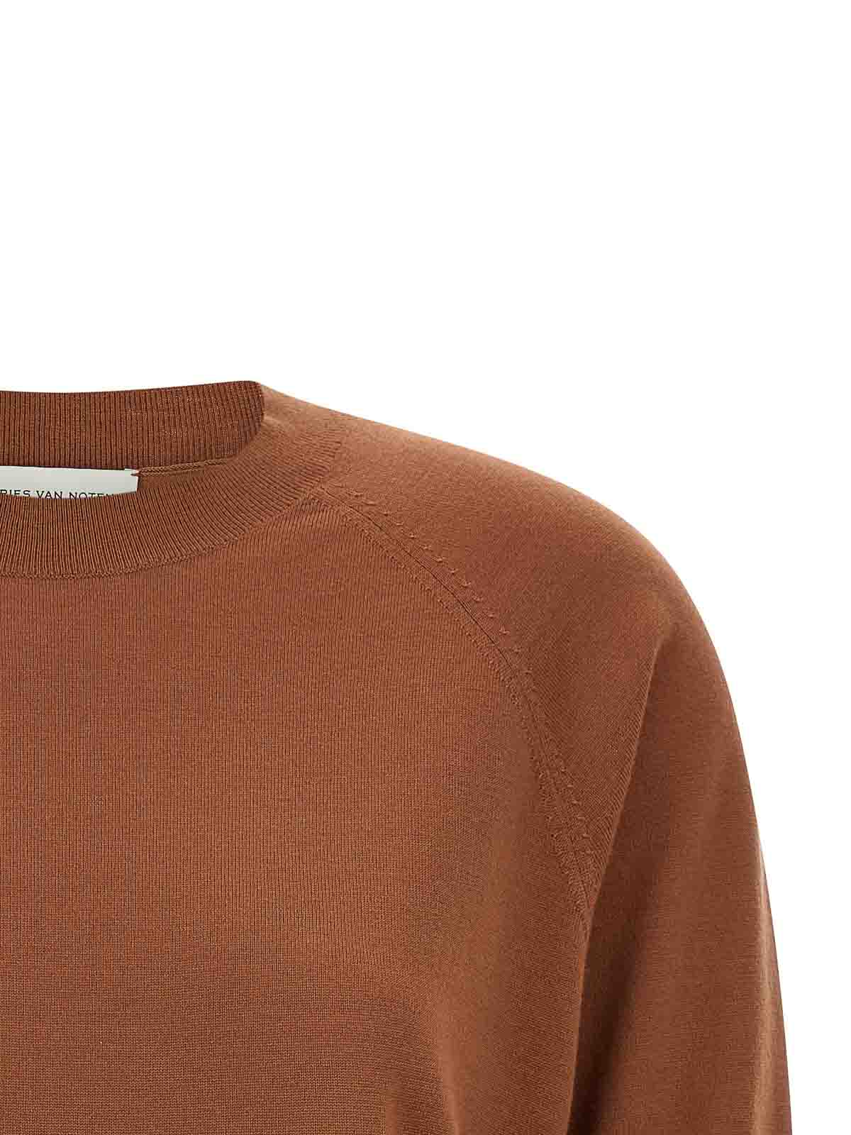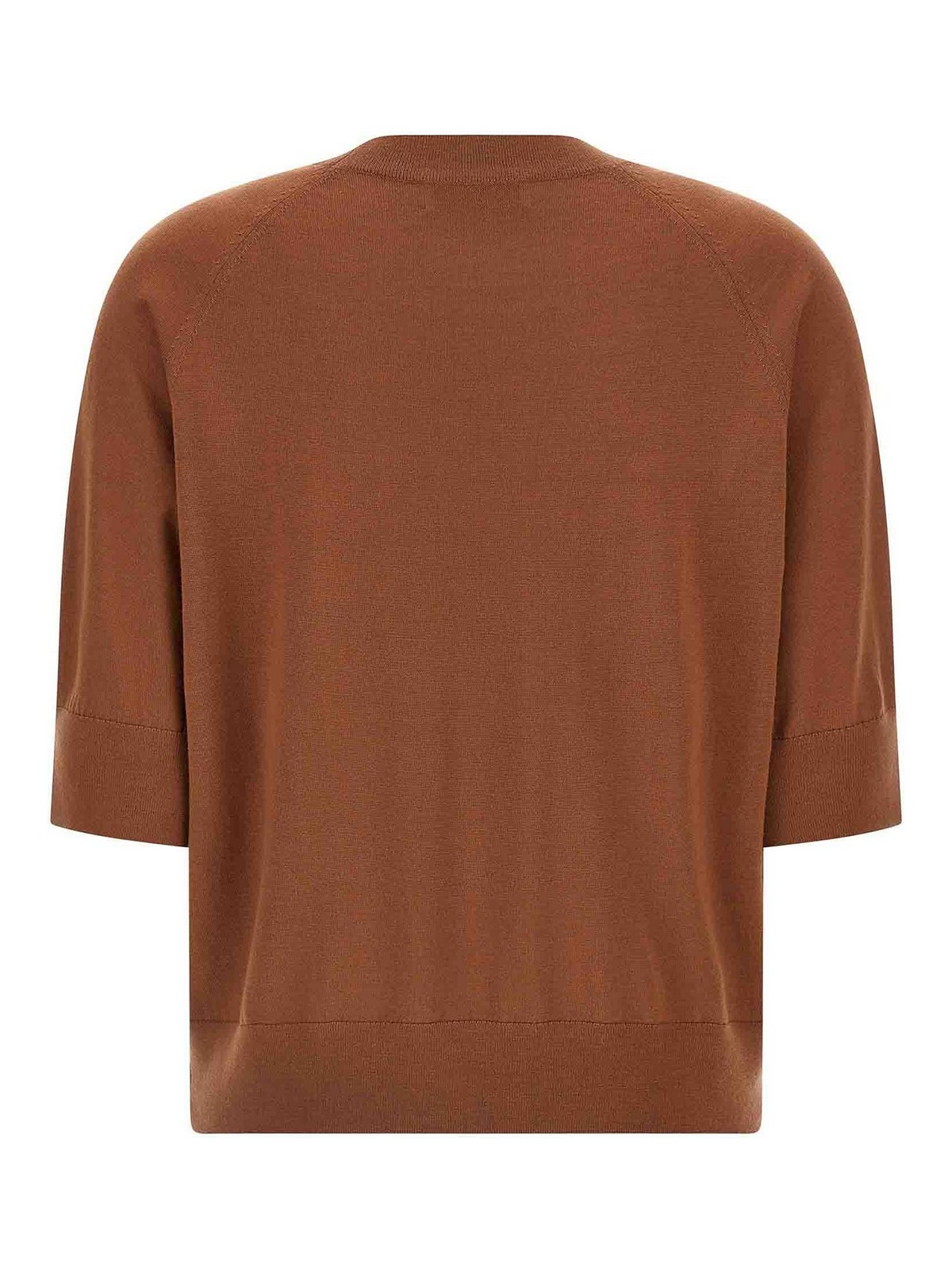 Merino wool 'tuan' sweater, crew neck, short cuffed sleeves, and headband on the hem.