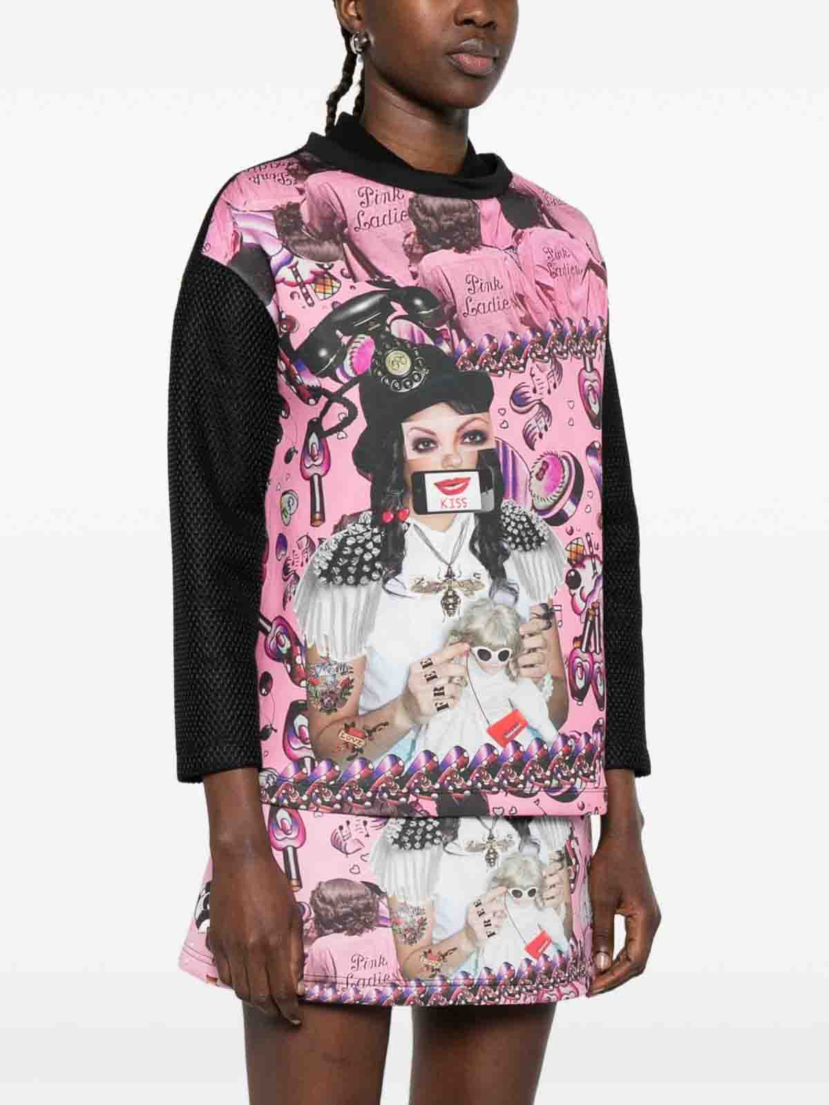 Pink and black printed round neck long sleeves