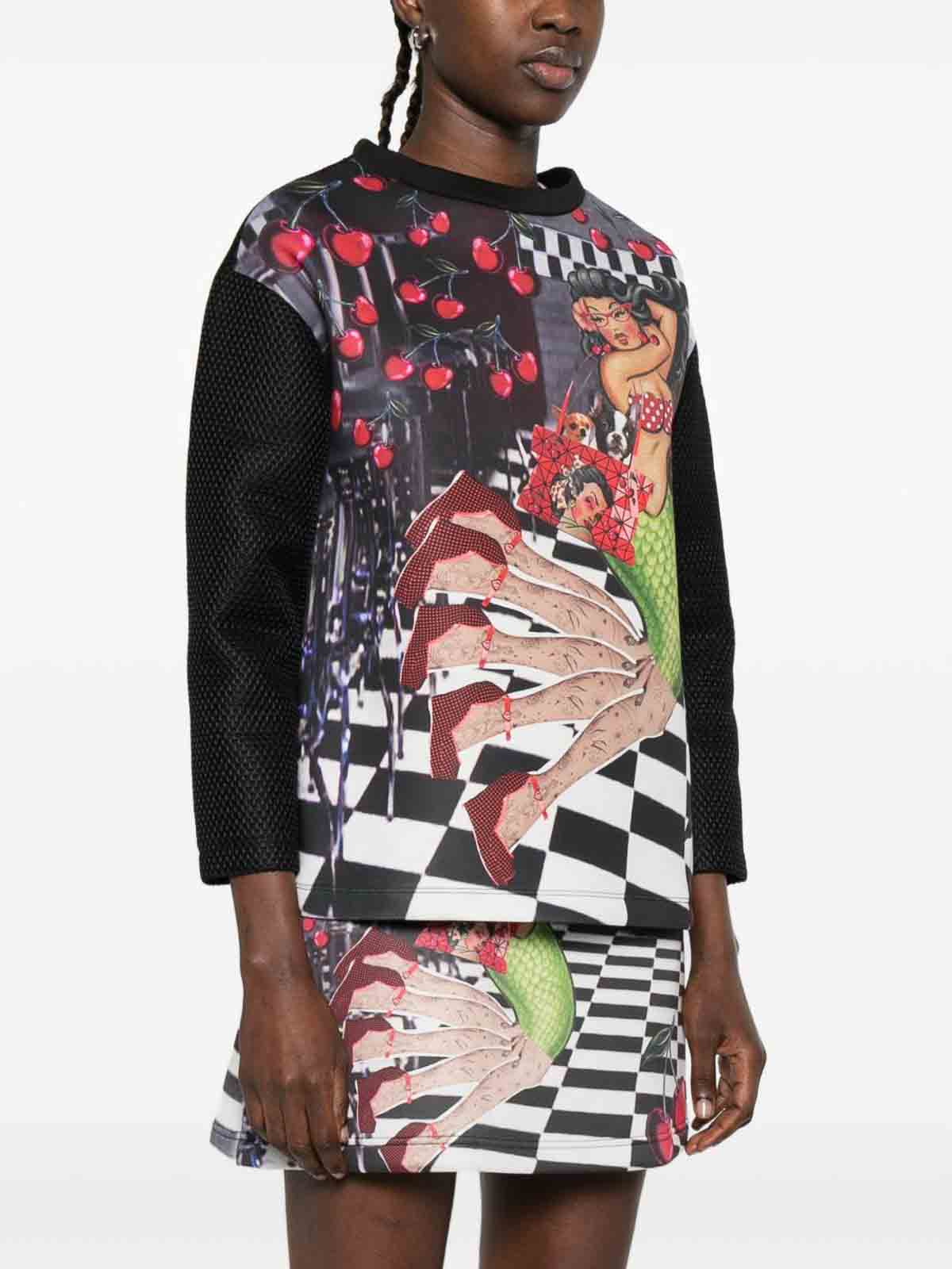 Black, multicoloured graphic print round neck long sleeves ribbed cuffs