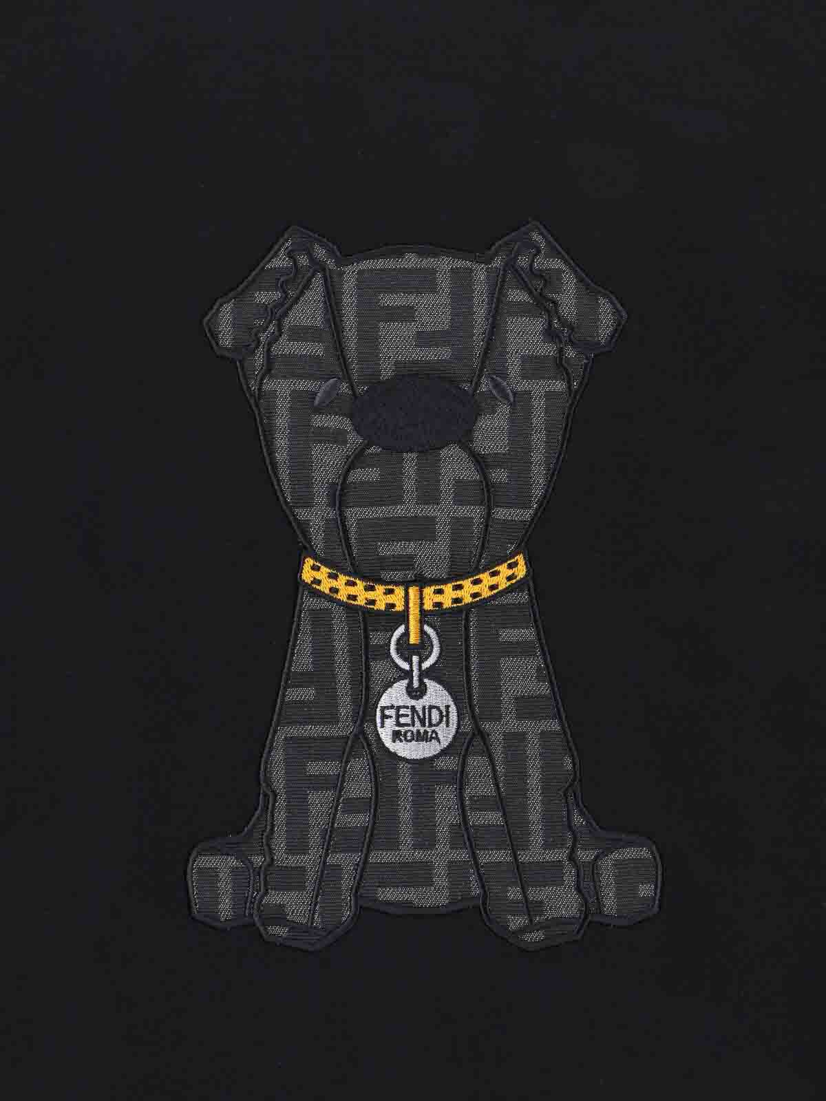 Fendi ito T-shirt, in black cotton, ribbed crew-neck, short sleeves, ito monogram ff motif embroidery on the front, ribbed finishes, straight hem.